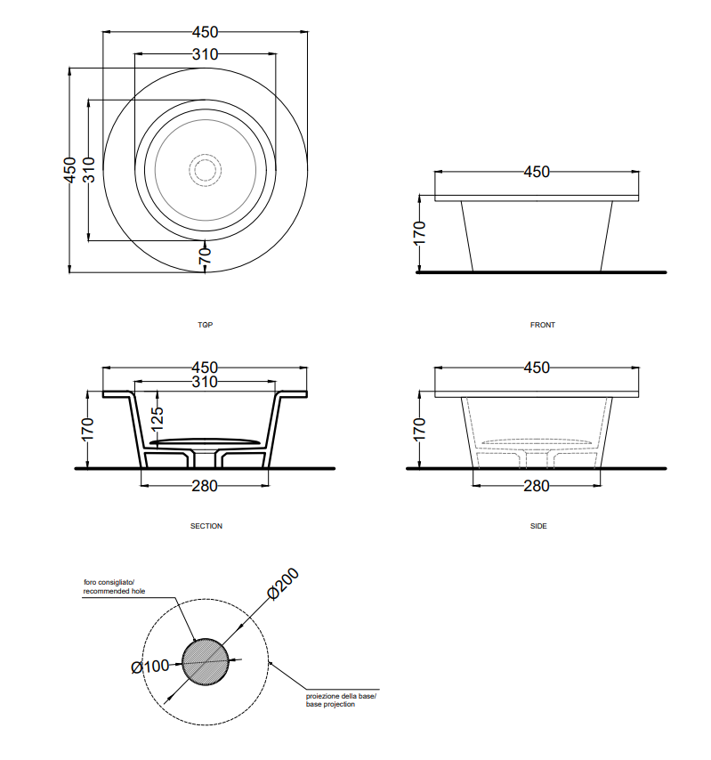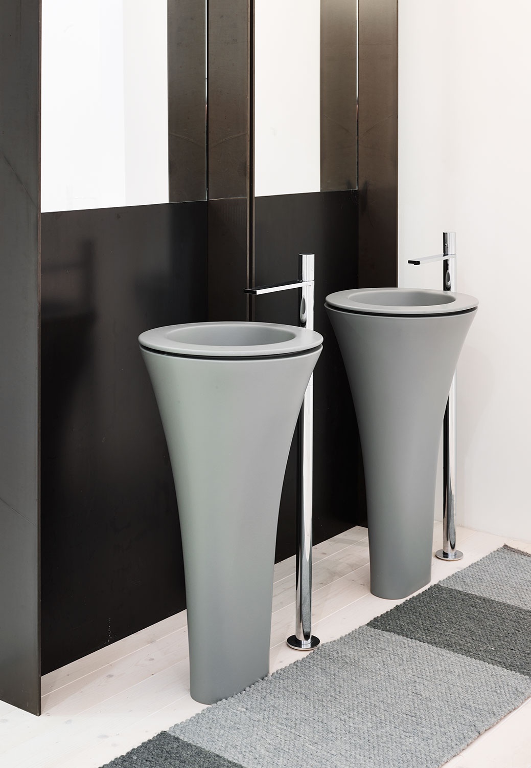 獨(dú)立式洗臉盆,用于中央房間安裝和地板出口,有不同飾面可供選擇。