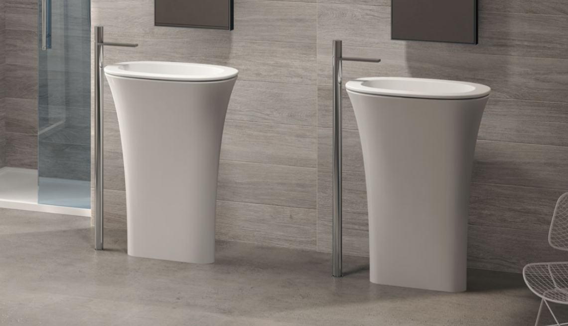 用于中央房間安裝和地板出口的獨立式洗臉盆,有不同的飾面可供選擇。
