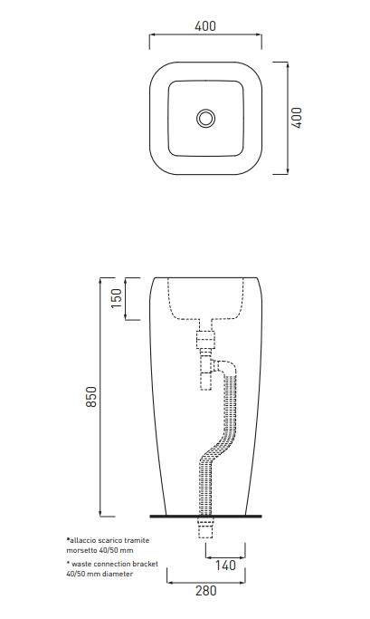 獨立式洗臉盆,四面都經(jīng)過處理,提供帶地漏的中央房間版本和帶墻面排水的版本。無溢流,有多種陶瓷表面可供選擇。