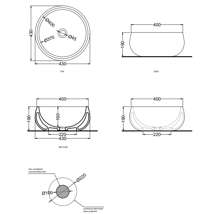 深而寬敞的洗臉盆,適合那些喜歡基本美學而又不犧牲實用性的人。甜美、迷人和大方的形狀增強了材料的可塑性:陶瓷。流線型設計,滿足任何款式和定制需求。無溢水口,四面涂漆,帶龍頭孔。提供不同飾面。