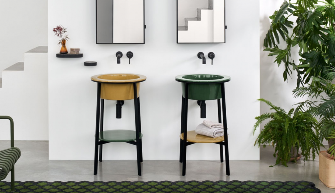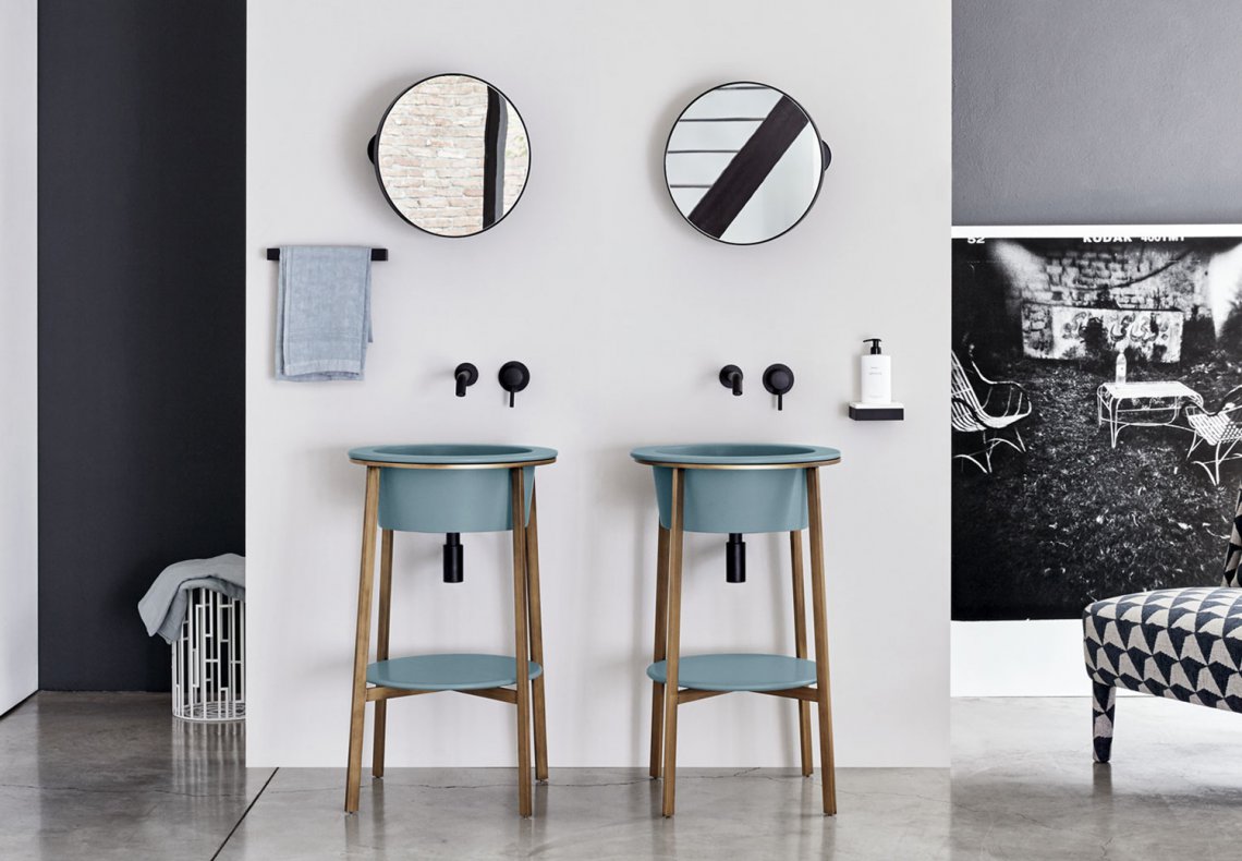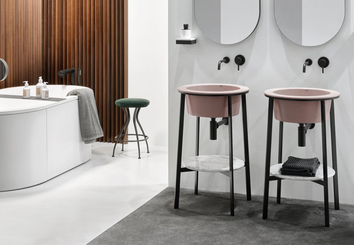 模塊化系統(tǒng),帶陶瓷洗臉盆,有多種飾面可供選擇,涂漆鋼結(jié)構(gòu)和方便的陶瓷或大理石臺面。
