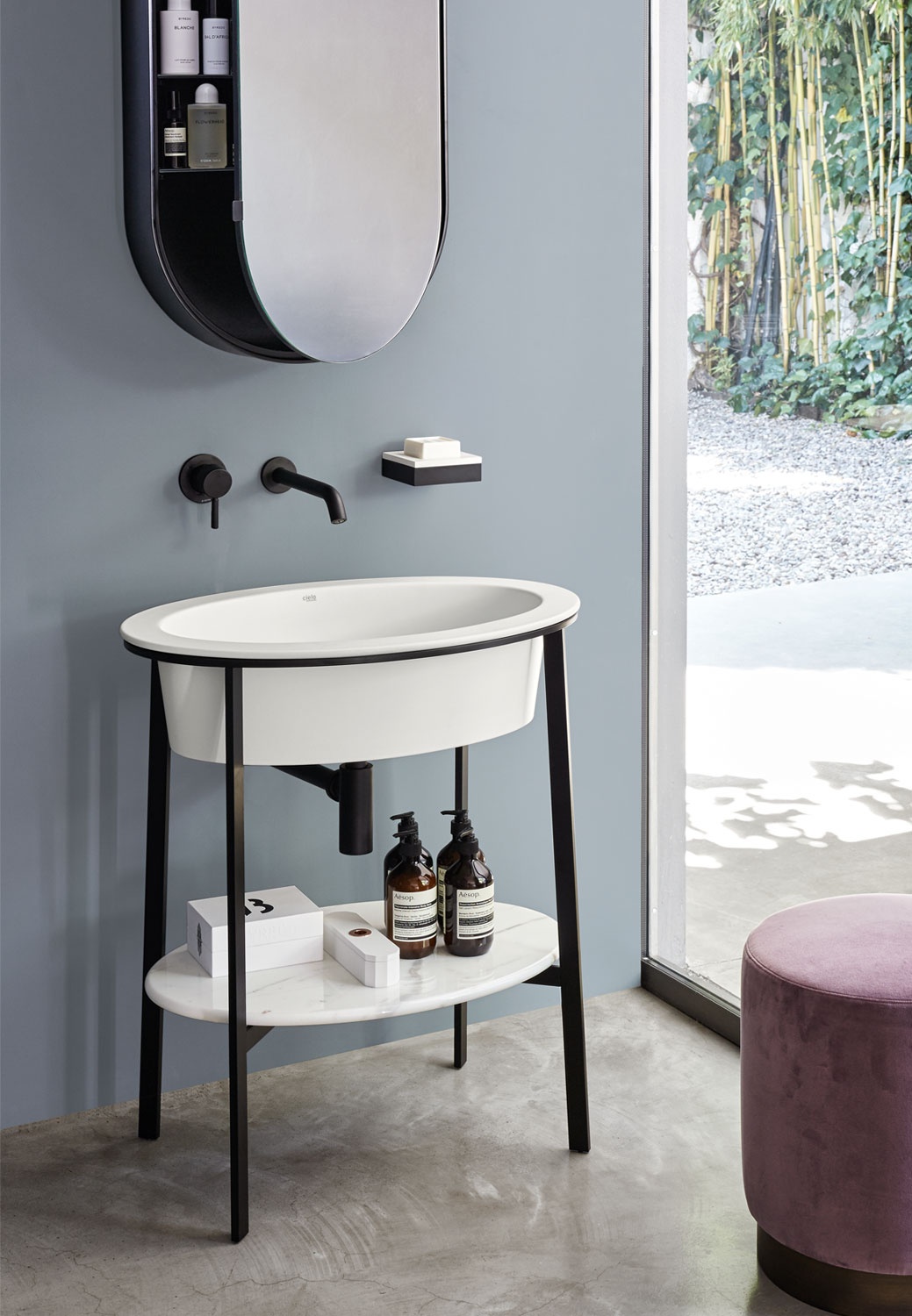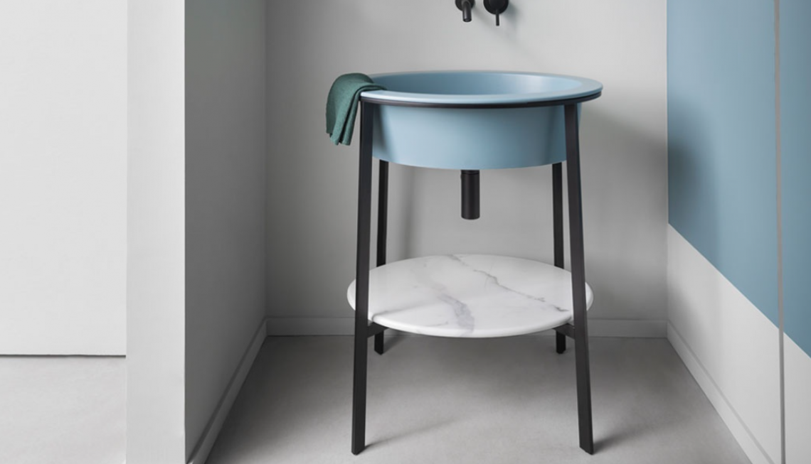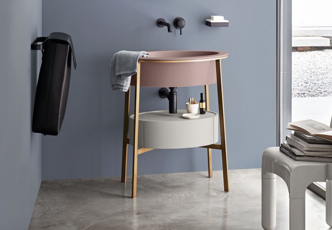模塊化系統,帶有多種飾面的陶瓷洗臉盆,提供帶或不帶龍頭孔的兩個版本,安裝在有各種飾面的涂漆鋼結構上,并可選擇組合方便的陶瓷或大理石臺面或實用的儲物抽屜漆面或珍貴的天然木材飾面。