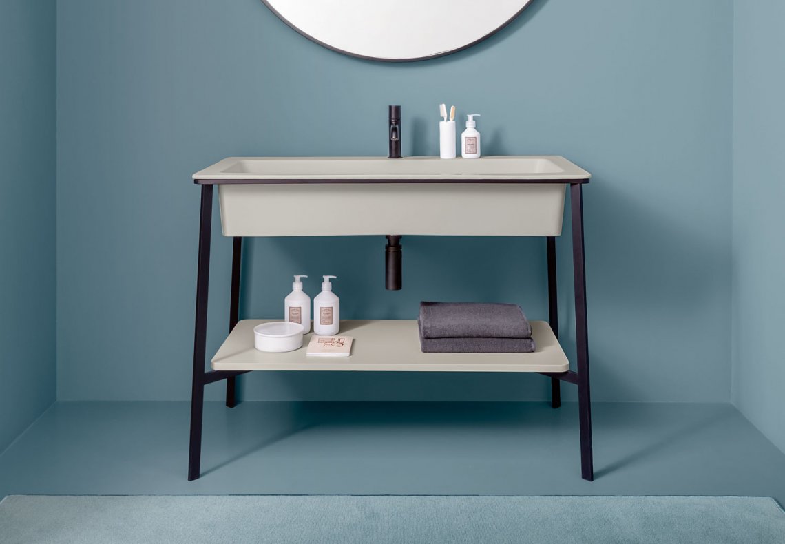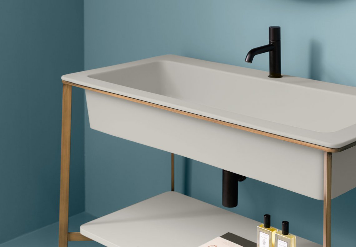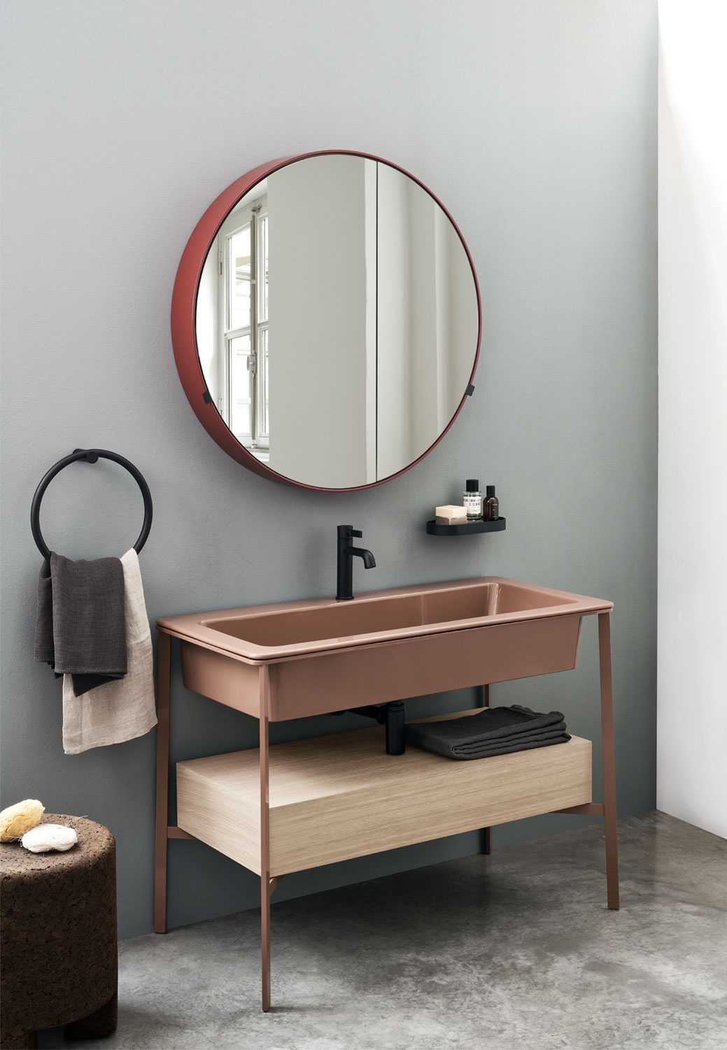 模塊化系統(tǒng),帶有一個大號陶瓷洗臉盆,有多種飾面可供選擇,安裝在涂有各種飾面的鋼結(jié)構上,可選擇組合方便的漆木或大理石臺面或?qū)嵱玫某閷先萜鳎衅崮撅椕婊騼?yōu)良的天然精華。