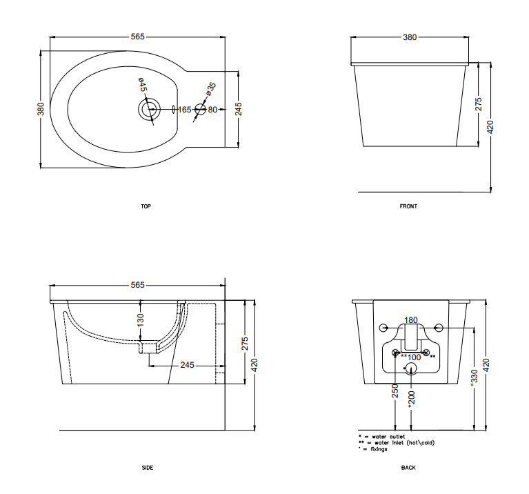 壁掛式一孔坐浴盆 Catino 帶固定套件