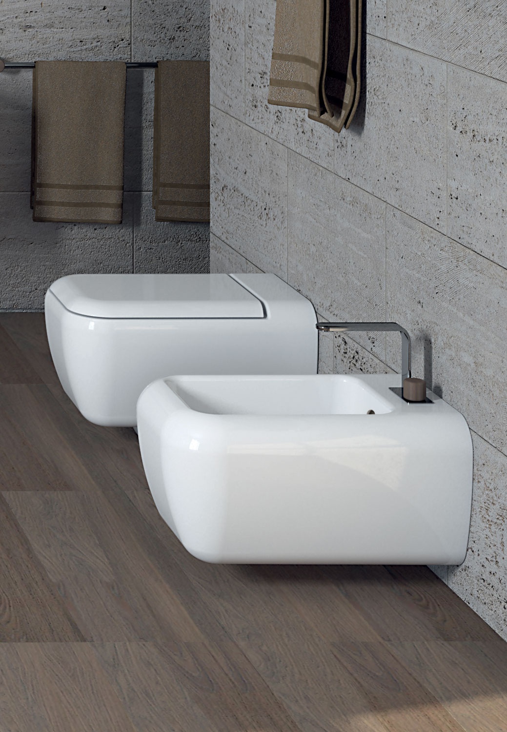 一條注重最小細節的系列,非常正式精致,采用最優質的材料制成。SHUI,字面意思是水。讓人想起光線和謹慎的流動,就像代表該系列元素的純粹標志,它轉化為和諧的曲線。懸掛式坐浴盆,提供各種陶瓷飾面