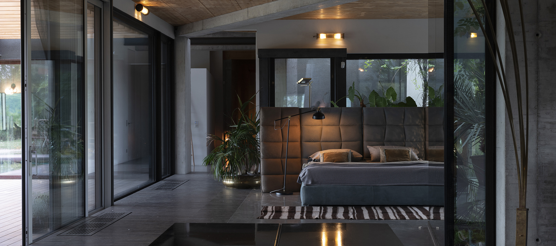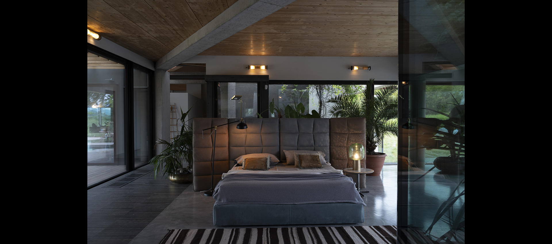 bed with reclining headboard made starting from a covered metal structure