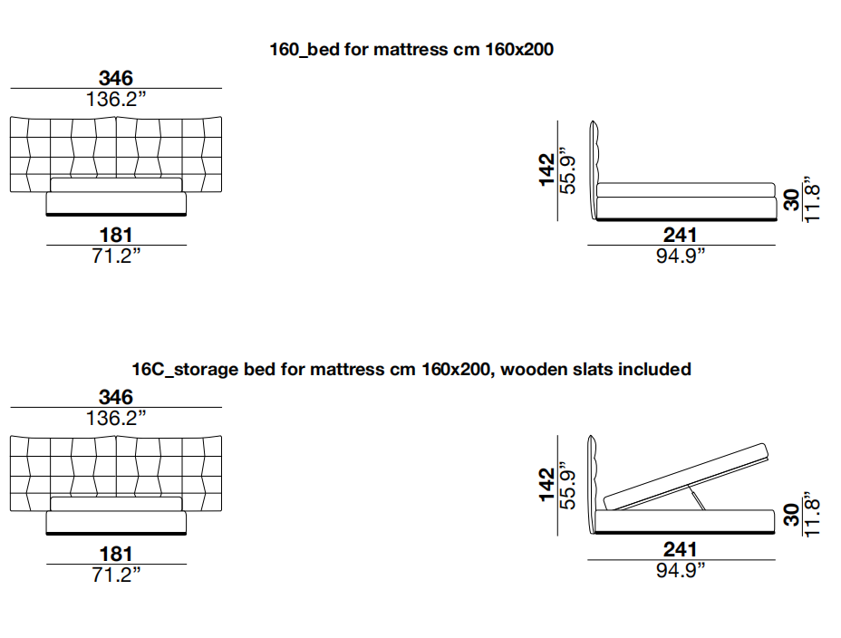 expanded. The feet are in shockproof plastic. The mattress is not included