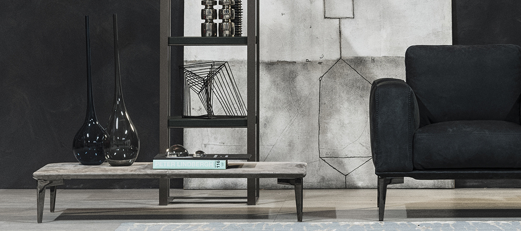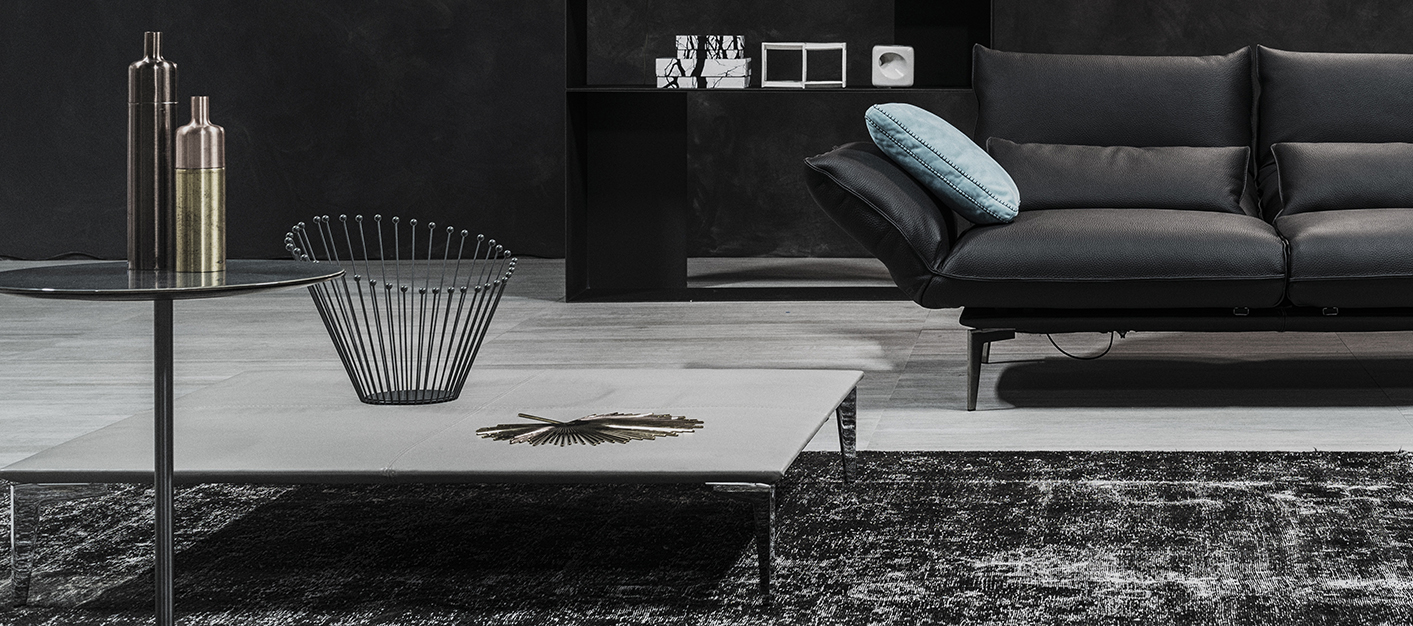 polished or black chromed metal. The tables are in metal covered with acrylic fjbra.