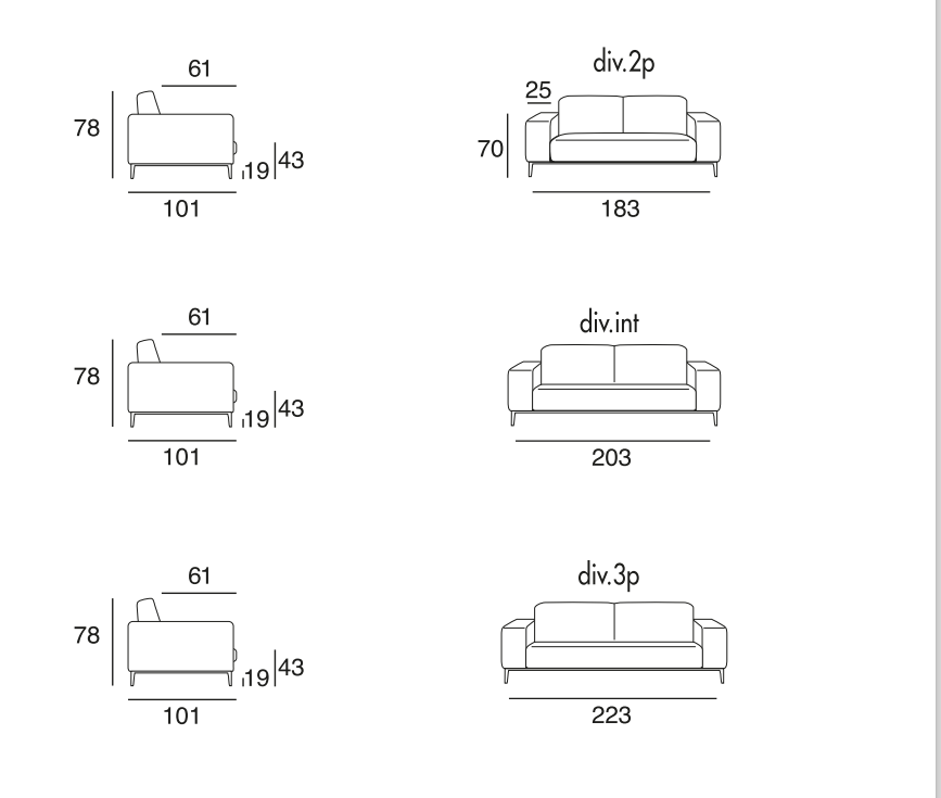 The armrests are in wood covered with polyurethane foam covered in goose down