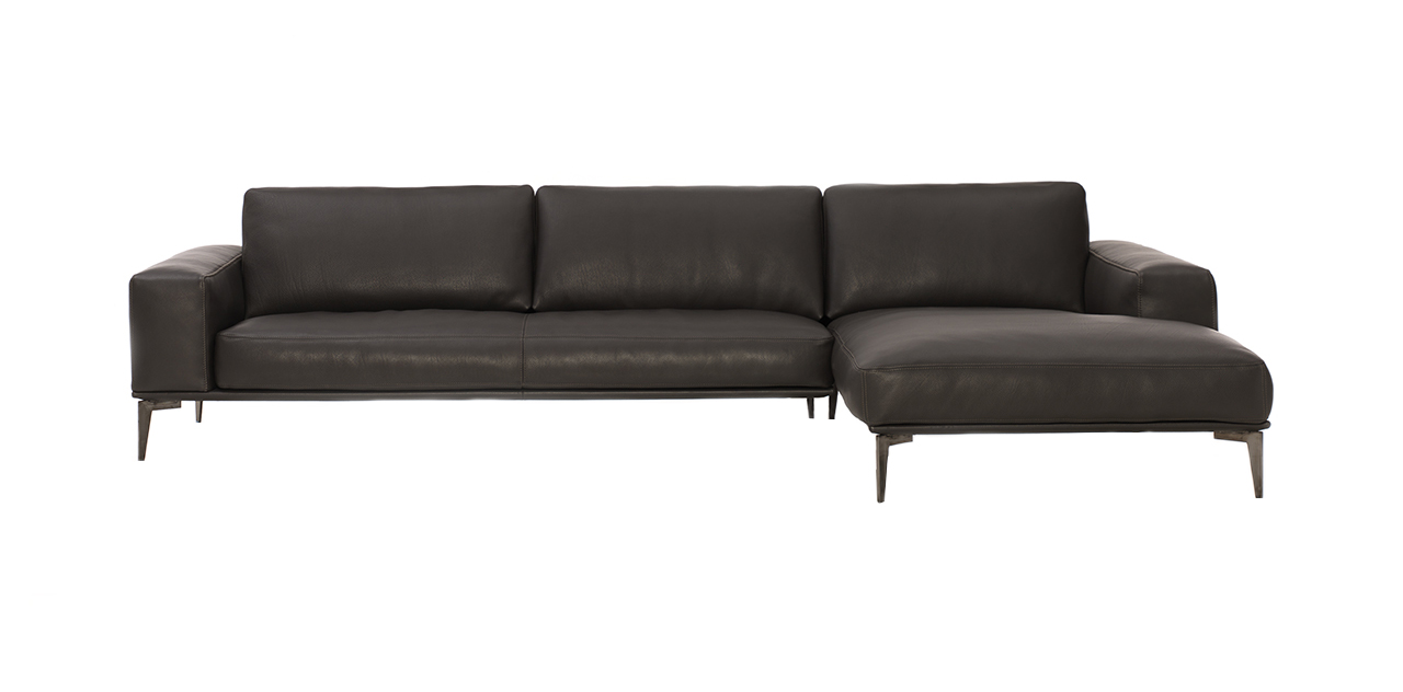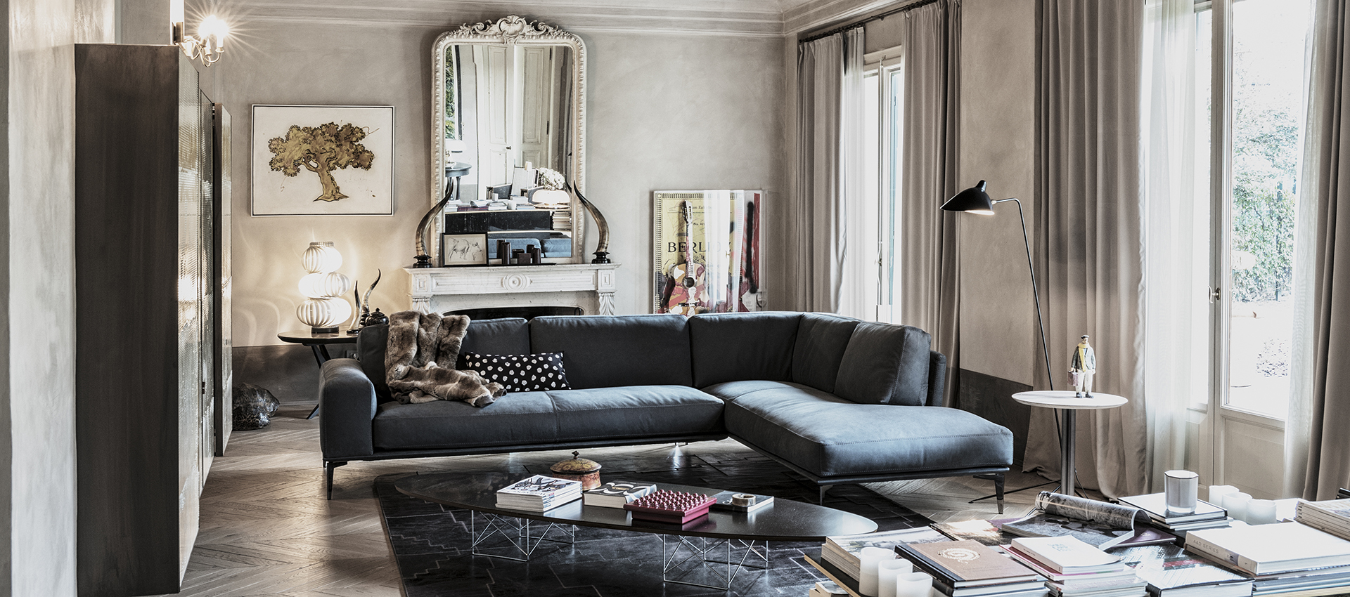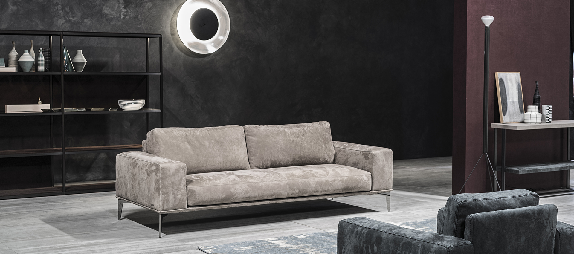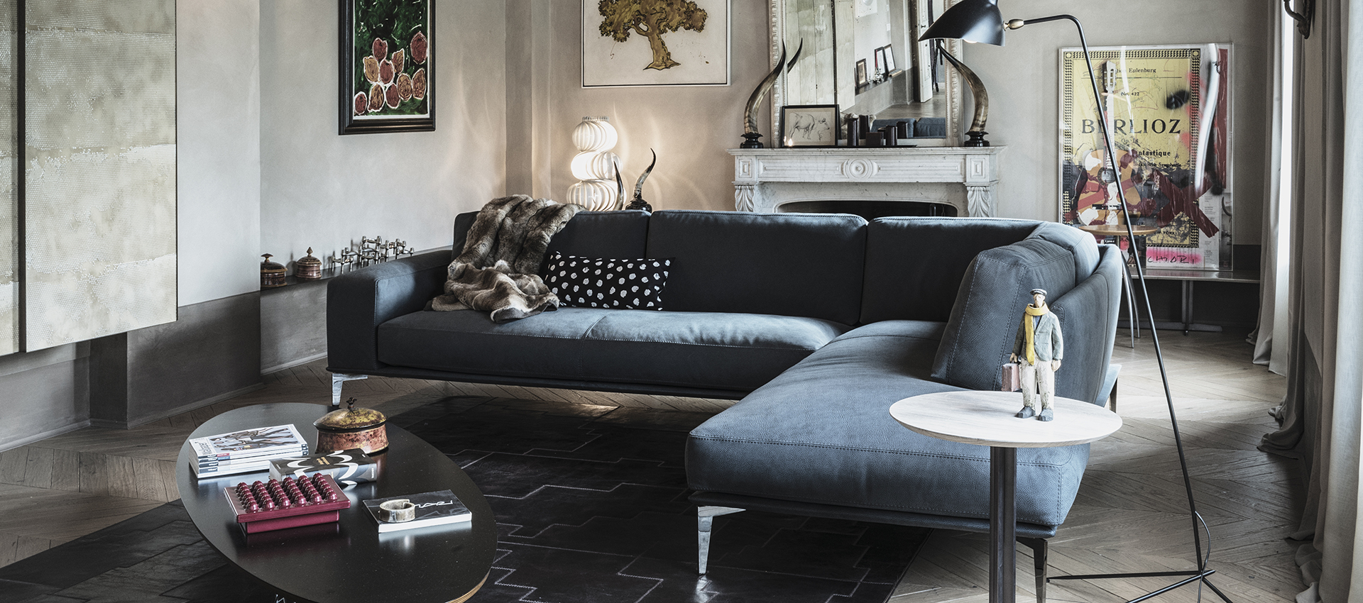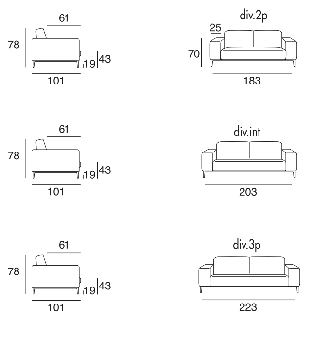 The armrests are in wood covered with polyurethane foam covered in goose down