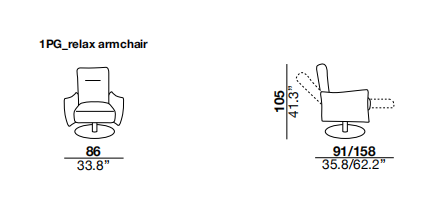 of siliconised polyester microfibers. The armchair is equipped with a Relax mechanism