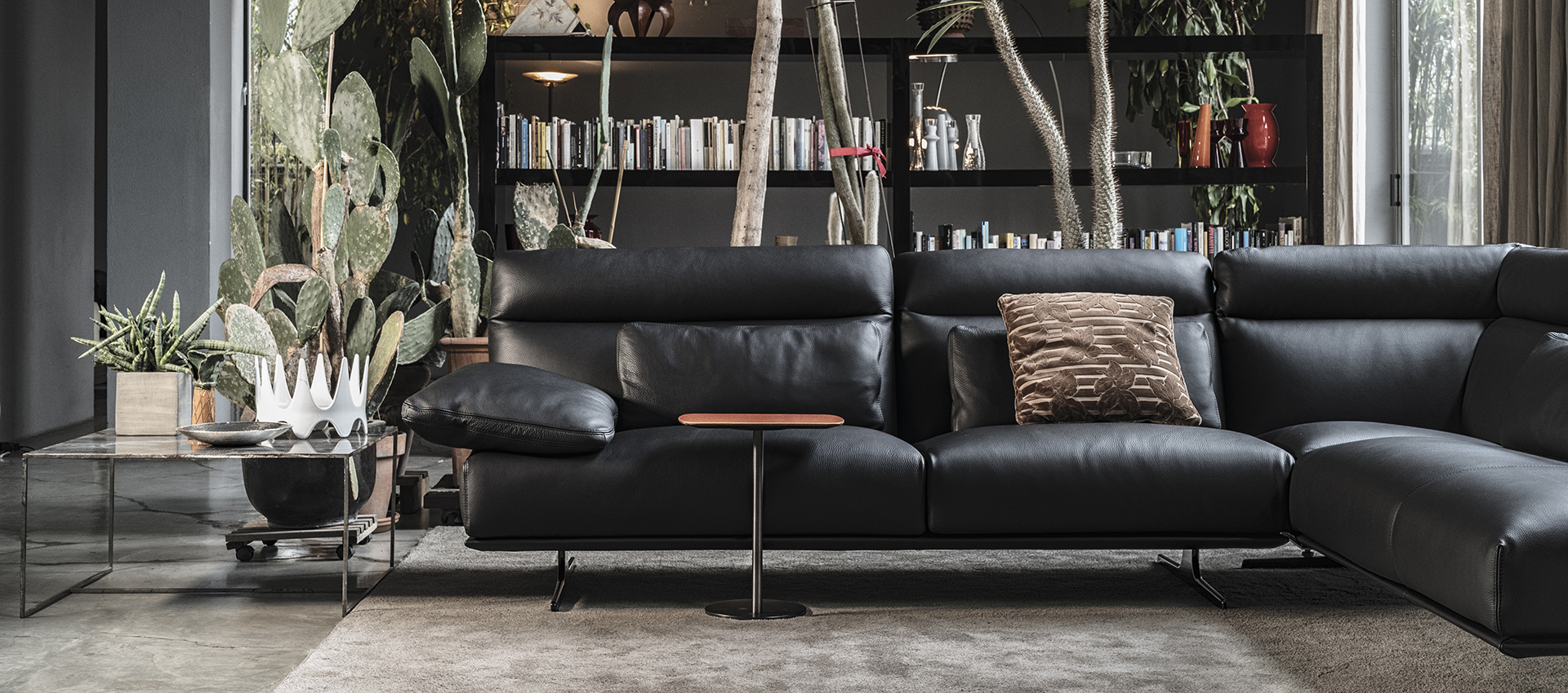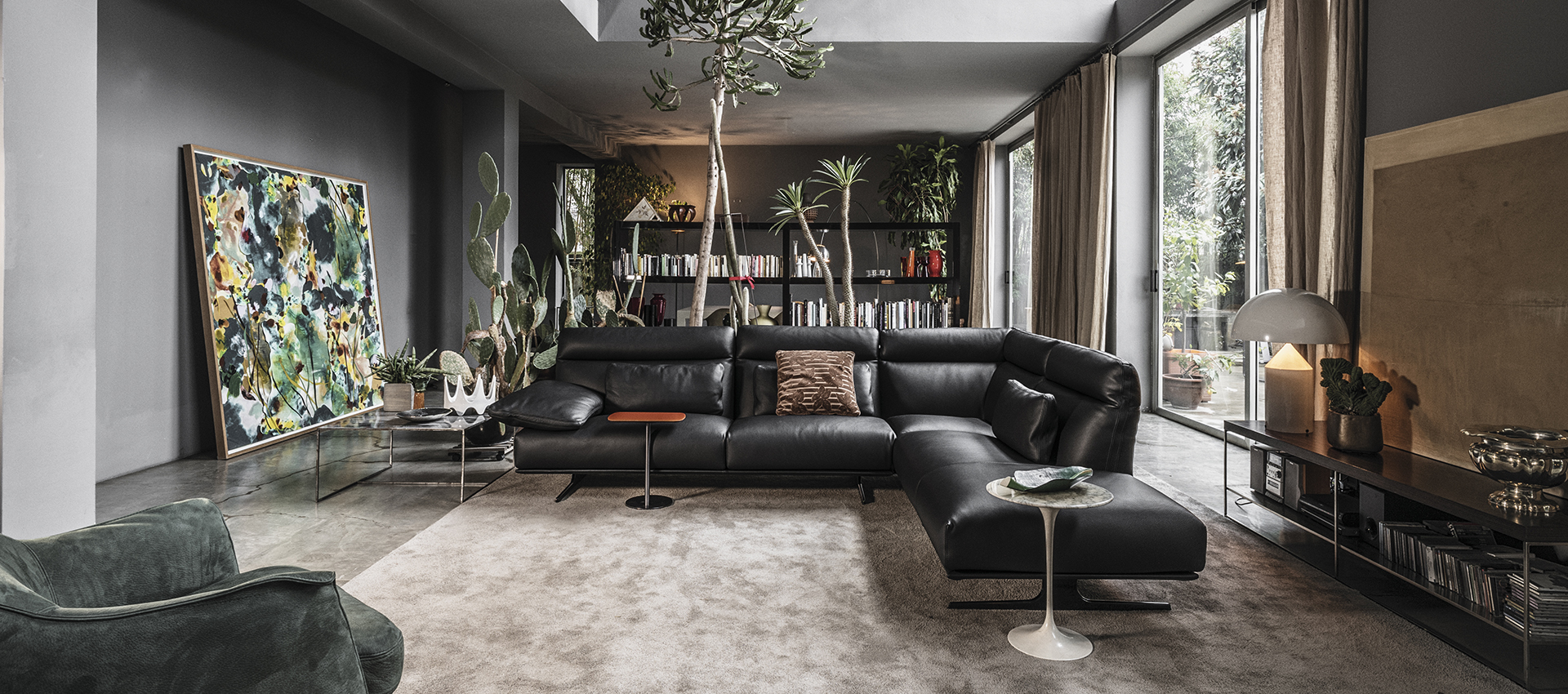 Modular sofa with metal frame and support of woven elastic tapes. The