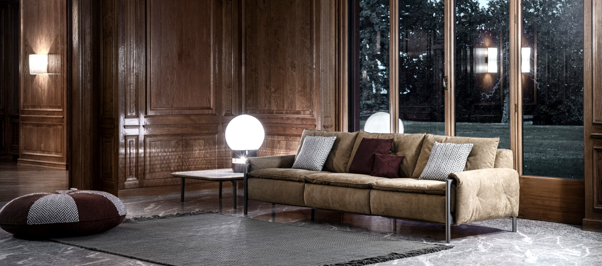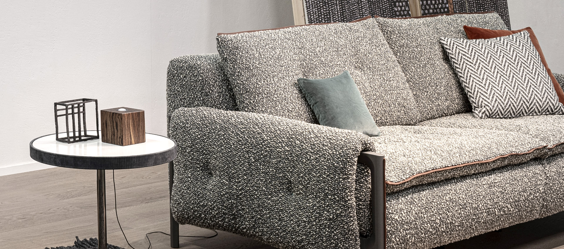 sofa with iron and wood structure and support of elastic tapes. The sessions,