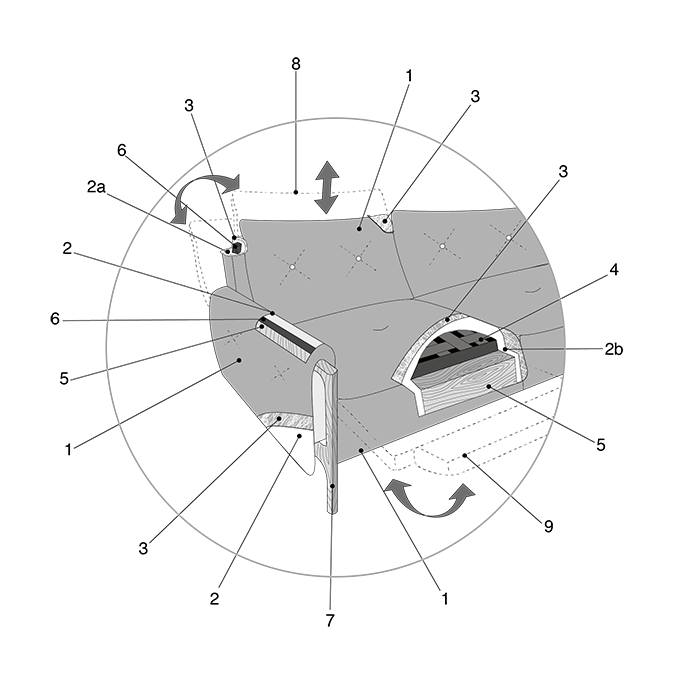 backs are in hypoallergenic acrylic fiber. The two mechanisms, adjustable through