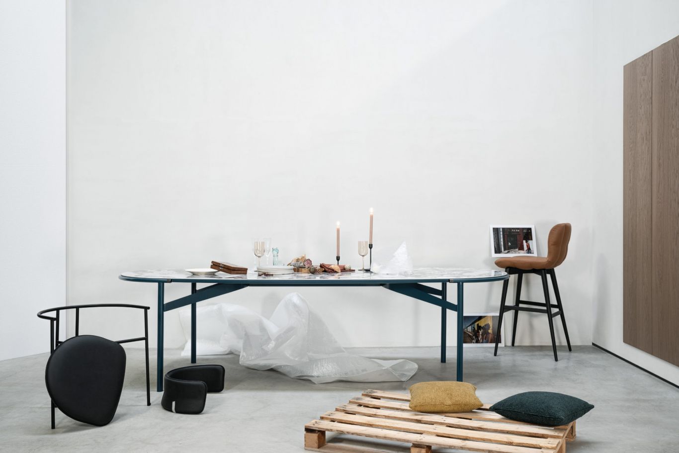A poco a poco prende forma lo scenario che abbiamo immaginato per la nostra casa moderna, un luogo in cui le forme si assemblano per creare oggetti semplici, di quella semplicità che tipicamente nasce da profondi processi di ricerca. Oggetti lineari, che possano assolvere alla loro funzione ed allo stesso tempo definire una precisa, inequivocabile idea di stile. Telaio metallico, verniciato opaco in 7 colorazioni differenti. Top disponibile in 3 diverse finiture e terminali cromati nelle finiture Standard, Nero e Oro. Per nostra scelta, la materia del top, attraverso le venature del legno o le laccature opache o i disegni della ceramica, si rende finalmente protagonista e domina sulla forma, fino a rendere senza tempo qualsiasi scelta stilistica.