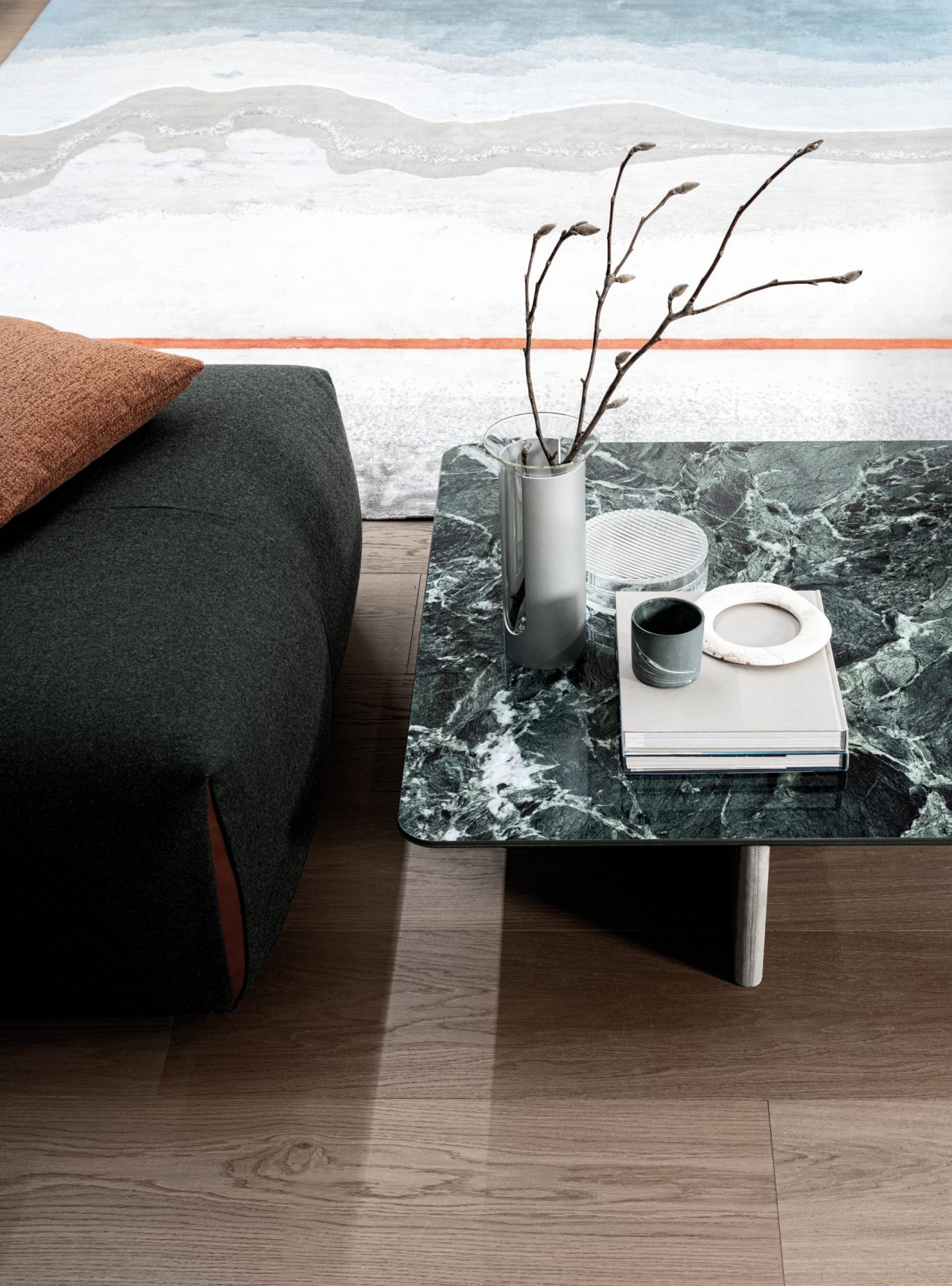 Grazie a diverse geometrie e diverse finiture tra cui scegliere, la ceramica si sposa col vetro temperato in un top dalla natura lineare, un piano d’appoggio raffinato, ma allo stesso tempo robusto e inalterabile, per garantire praticità e stile nella zona living.