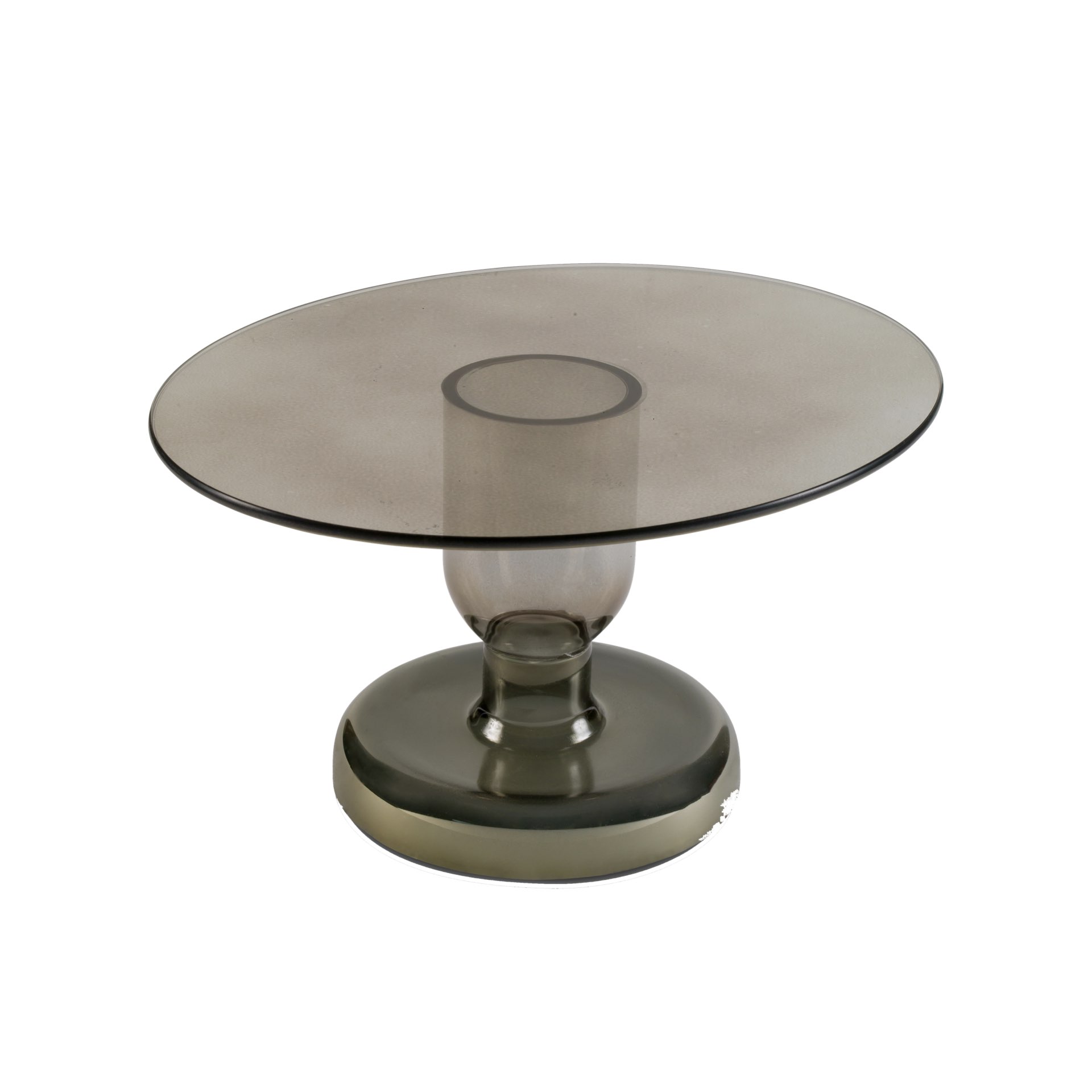 Base metallizzata, struttura in vetro pirex. Finitura in lustro colorato.