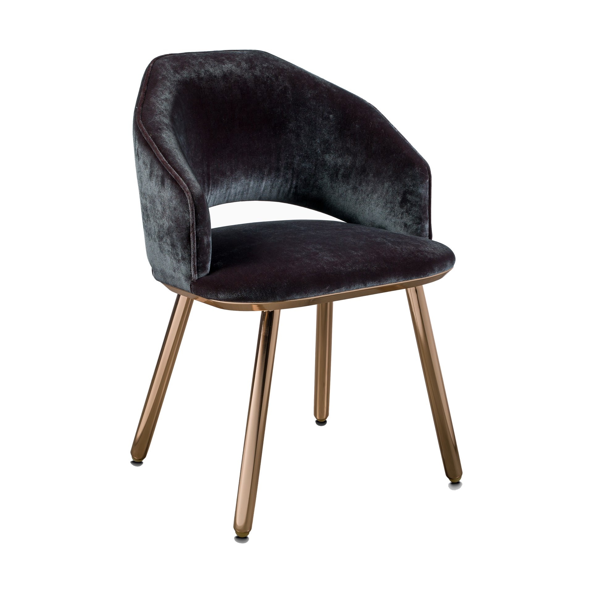 Struttura in legno. Rivestimento in pelle o tessuto non sfoderabile. Imbottitura in poliuretano espanso. Base seduta e gambe tubolari in metallo.
