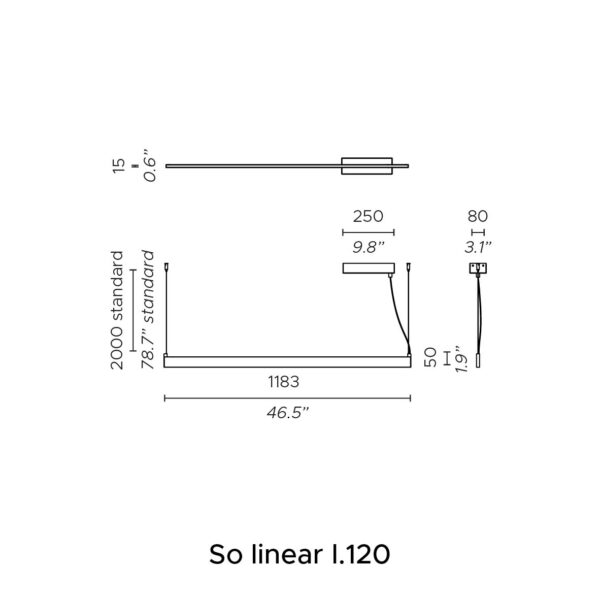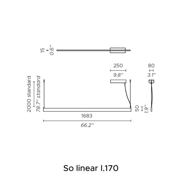 Nella versione a sospensione Fly Linear viene fornita senza accessori e prevede una doppia emissione luminosa (sopra e sotto).
