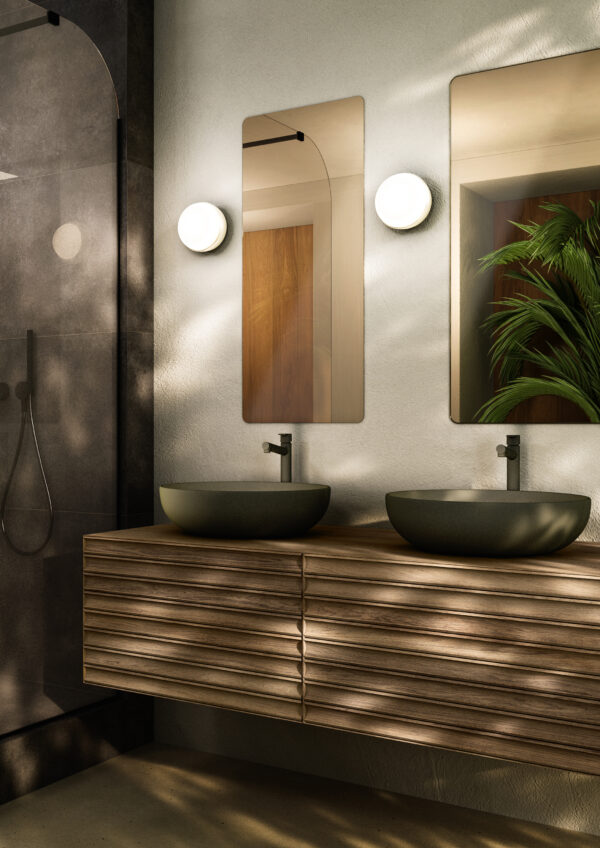 La versione da parete ha protezione IP44 e può essere ordinata con spina per il collegamento ad una presa di corrente.