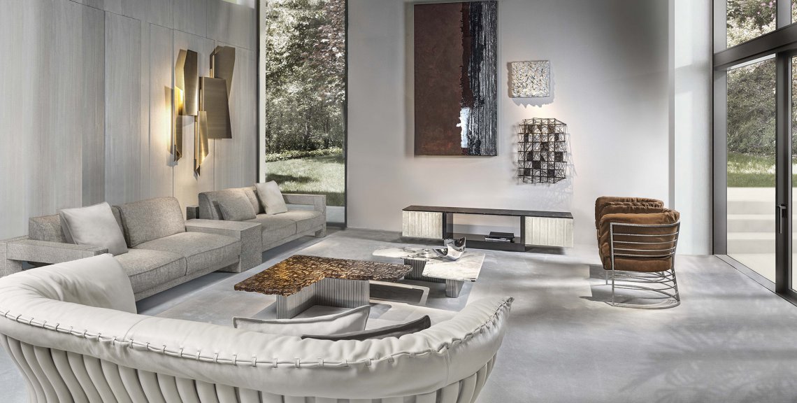 Domino storage unit suggests a perfect balance between design and materials used like decorative resins, colored pigments and natural finishes. The main features of this item are represented by vertical lines and three-dimensionality of the doors where metal inserts are not only decorative but also functional to open them. This storage unit is proper for living areas as dividing element from dining area being decorated on all sides.