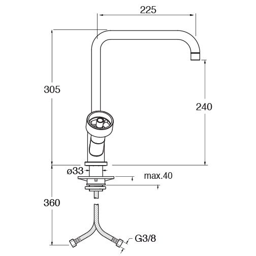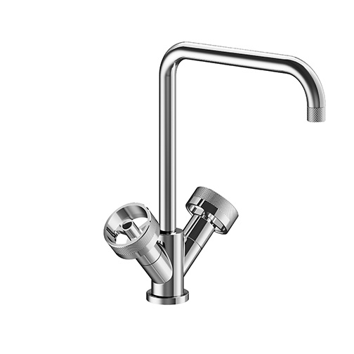 Dual-control countertop mixer for single-hole kitchen, swivel spout, with manual mixing