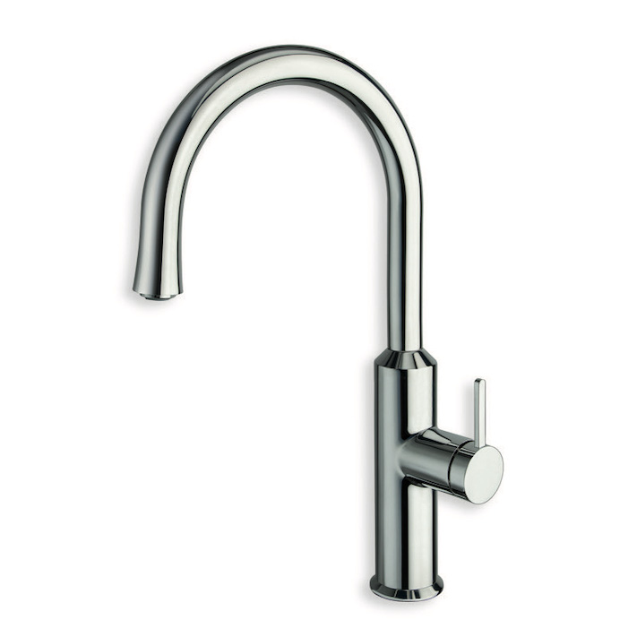 Single-control kitchen mixer, single-hole deck-mounted swivel spout, with right-hand side mechanical mixing and double click opening system, H. 415 mm