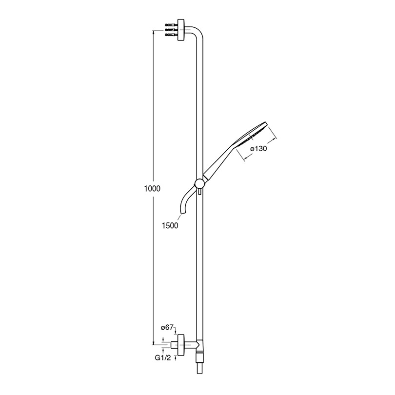 Shower set, length 1000 mm, adjustable ABS anti-scale mini showerhead ?130 mm, long-life hose ****, built-in water outlet and sliding support