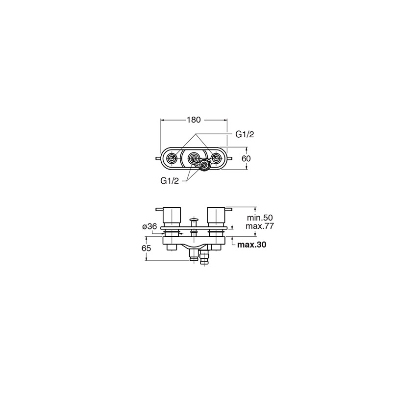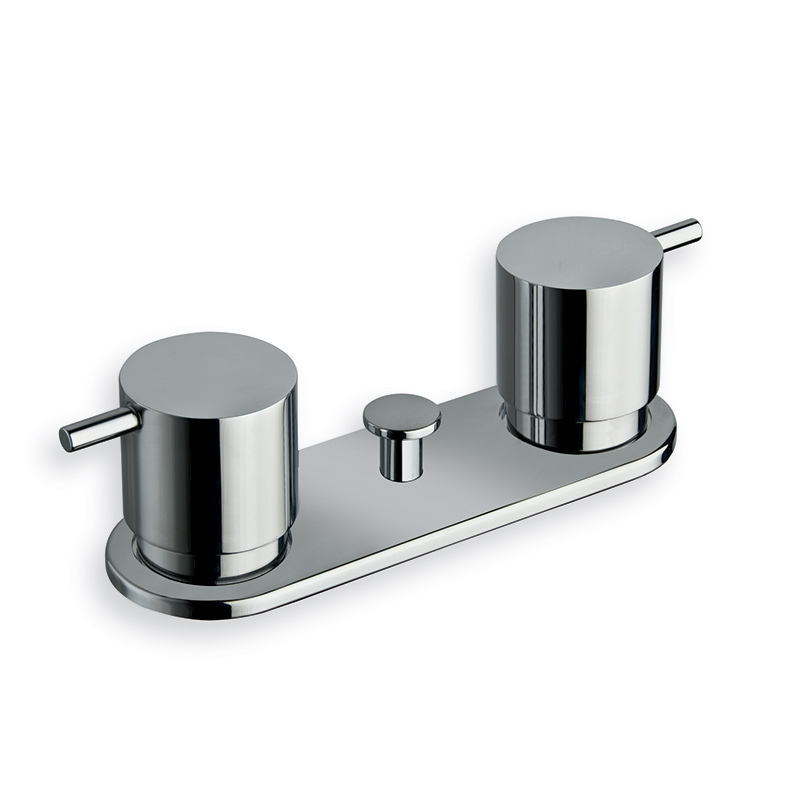 Inspectable dual-control deck-mounted bath edge mixer, ABS plate, with mechanical mixing, automatic diverter with 2 outlets, complete with recessed part