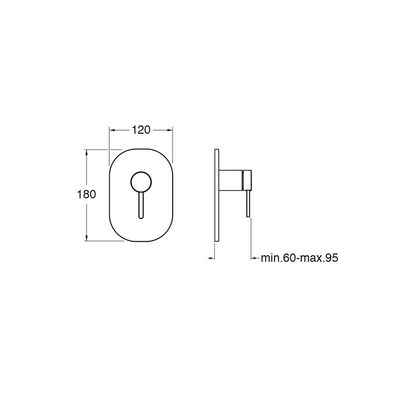 Single-control wall-mounted external set for shower, metal plate, with mechanical mixing. For completion with recessed part CRICS535