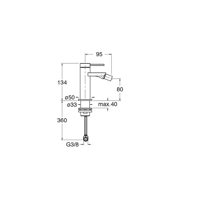 Single-control single-hole deck-mounted Bidet mixer, with mechanical mixing, without drain