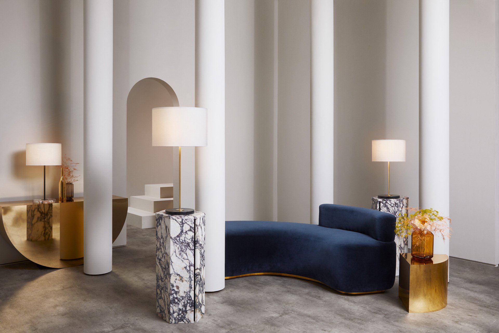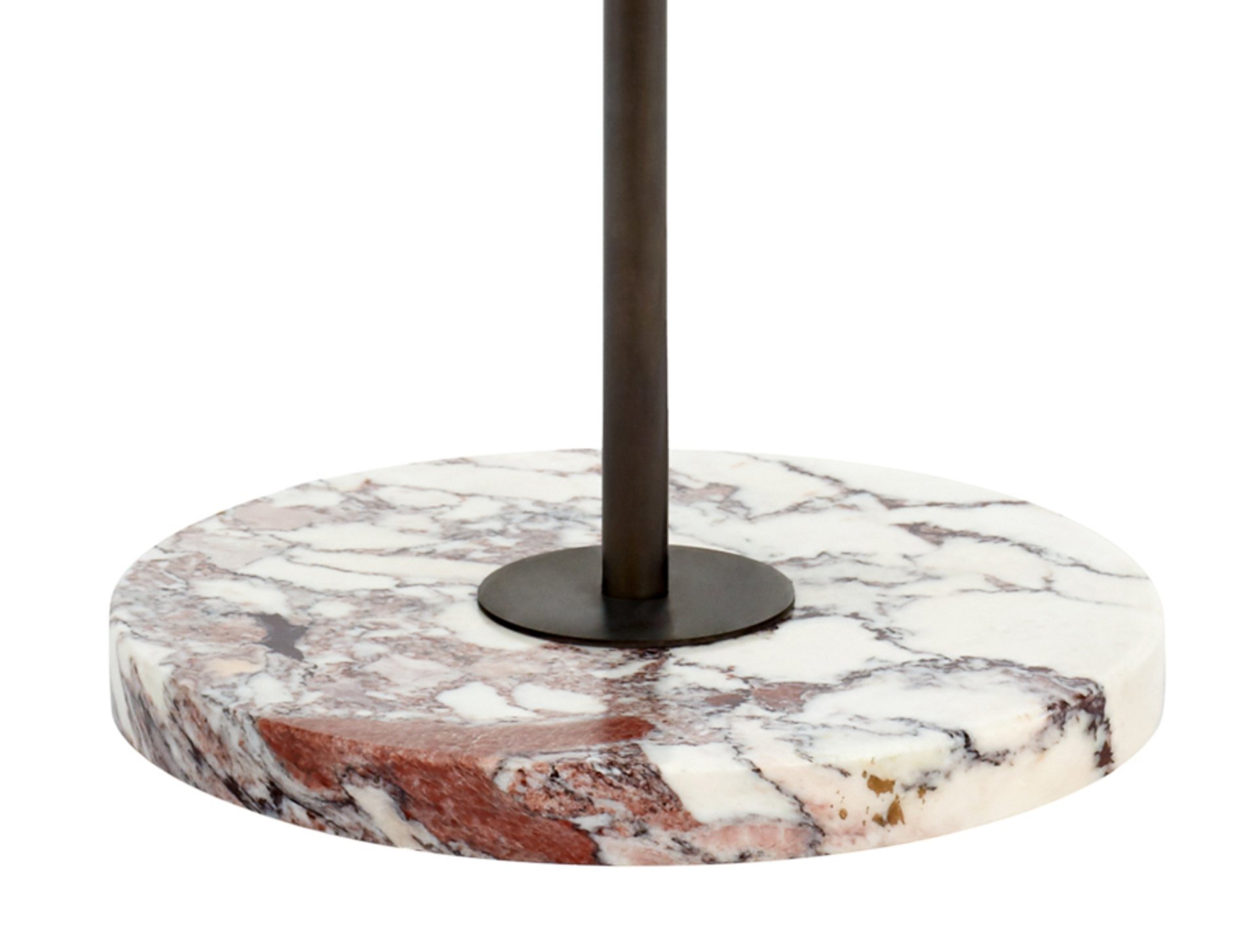 Inspired by fine metal railings, the minimal nature of the stem joins the rich texture of the Nero Marquina and Calacatta Viola marble base and textured linen shade. A luxury version of the most simplistic elements of a table light. The perfect combination to bring simple elegance to any interior. The solid diffuser at the top covers the bulb whilst complementing the finish of this elegant light. Both combinations are available in two sizes.