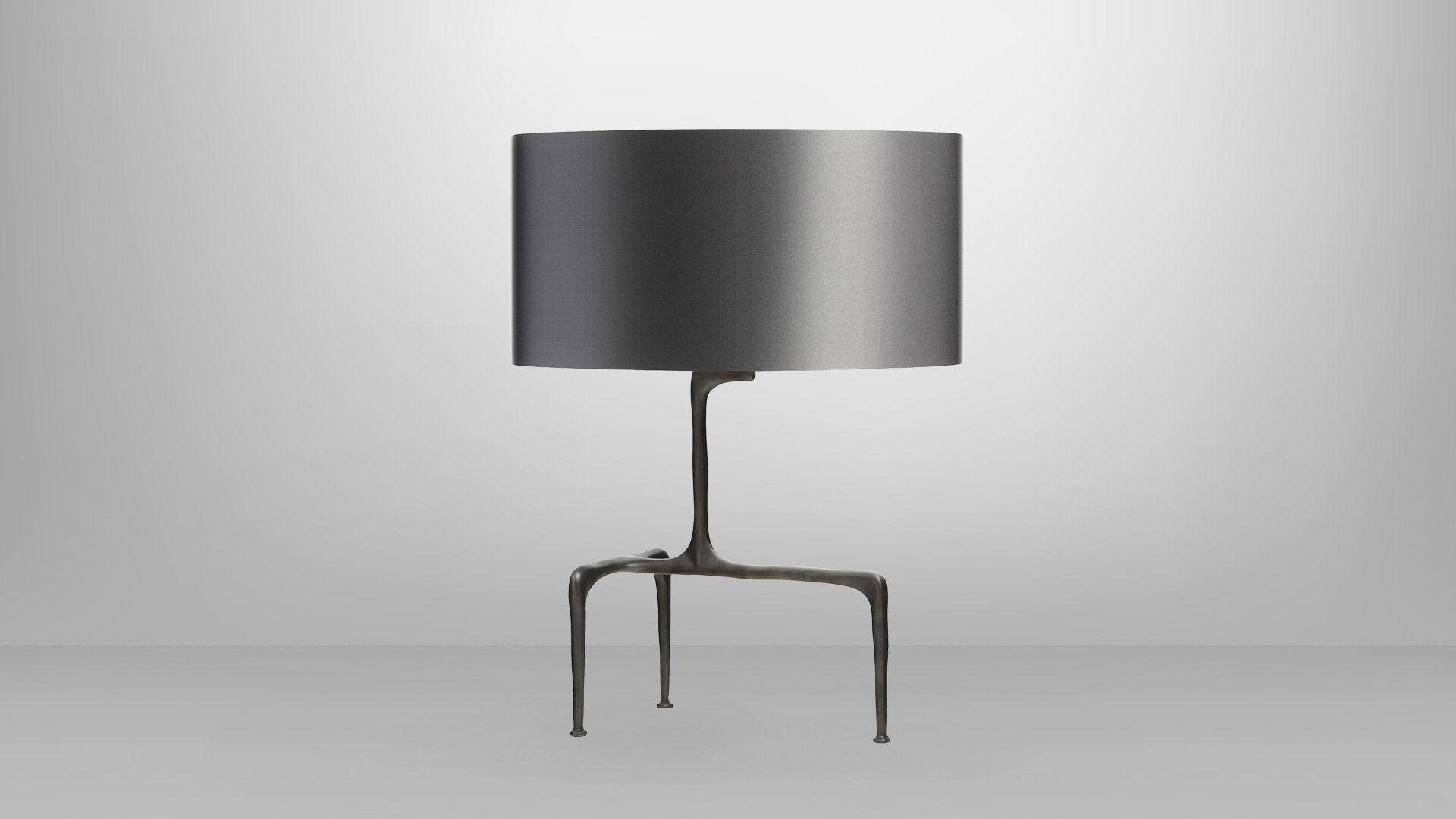 Our craftsmen hand-cast a base in brass with its natural undulations. It is then bronzed and waxed to give either an antique finish or solid bronze patina. The oval handmade shades have a matching top diffuser to prevent any glare when viewed from above.