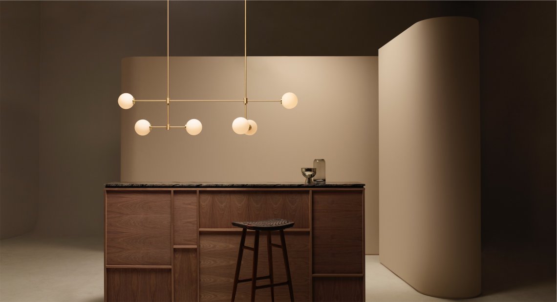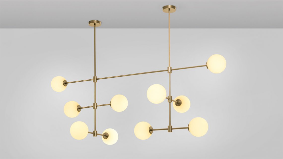 A grand statement of graphic precision, the TREVI MULTI is a series of satin brass or bronze arms arranged to illuminate a larger space and can be scaled to fit any interior. Originally inspired by the famous fountain at the Piazza di Trevi, the new multi-arm version features elongated brass or bronze arms composed in a grid like formation that provides light at two or three tiers.