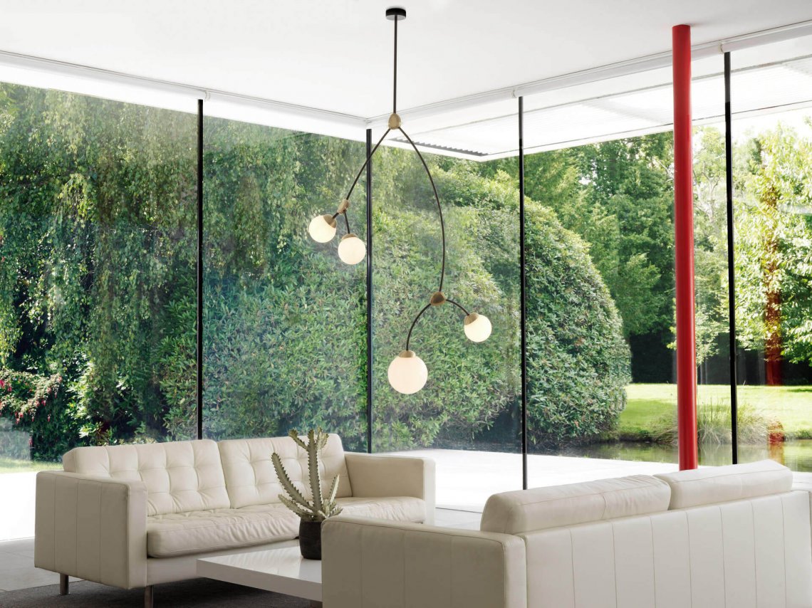 Drawing inspiration from nature and organic growth, the arms of IVY, like plants bending and taking shape towards the sunlight, reach out towards all corners of the room and cast a wide pool of ambient light. Available in three configurations, featuring 3, 4 or 8 glass shades and either a vertical or horizontal arrangement, the IVY Pendant Light offers options for a variety of uses and spaces.