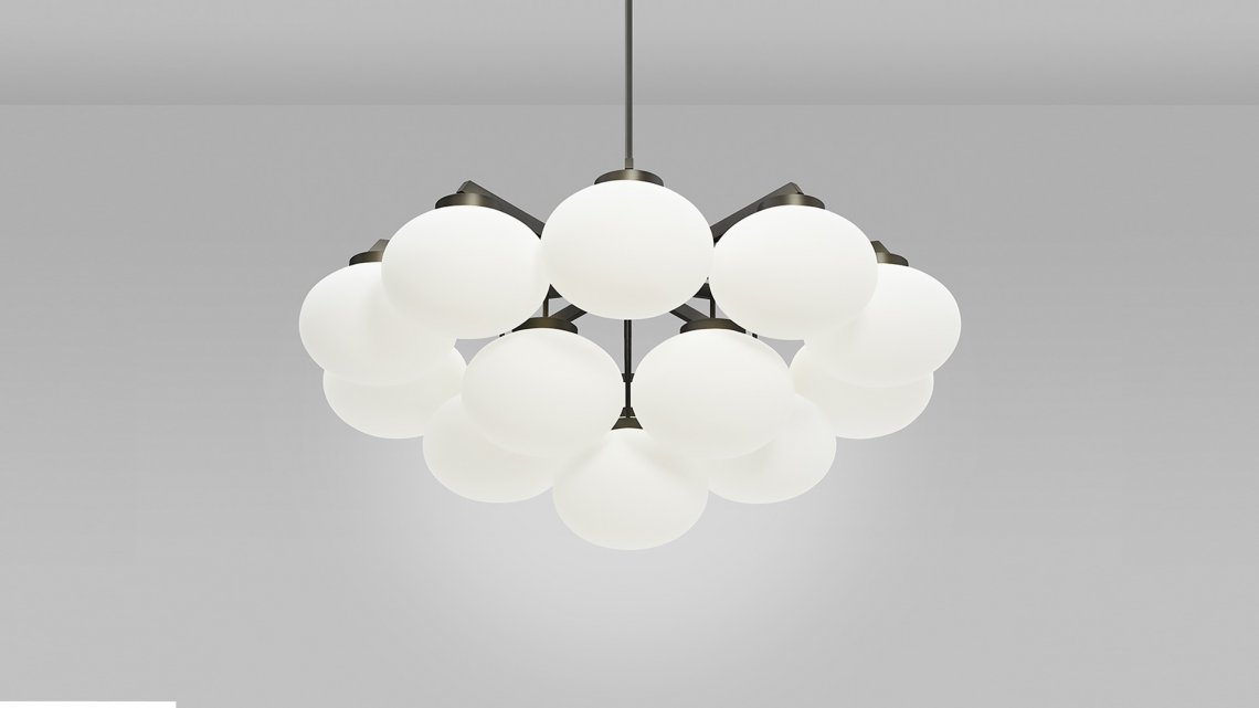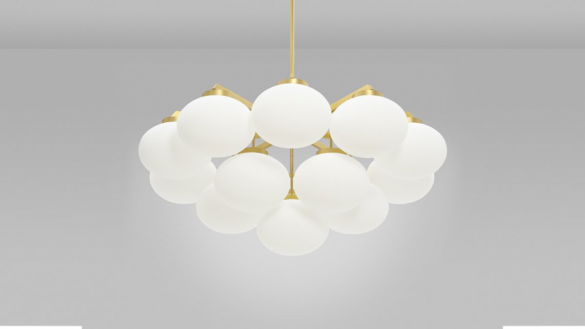 Sculptural and graceful, the CLOUDESLEY Chandelier is available in three sizes to suit a range of interiors. Opal glass shades are suspended in tiers by an expertly machined brass frame that is available in either a satin brass or bronze finish. The soft curves of these chandelier lights create a calming and heavenly atmosphere, ideal for adding a relaxed ambience to a bedroom or living area, and the circular form means it hangs perfectly above any round table.