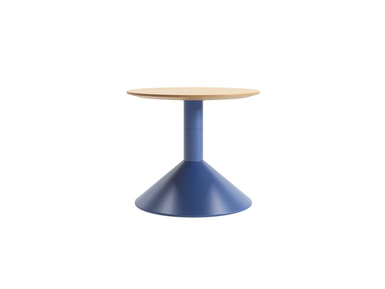 Available in two different dimensions, these living room service tables feature a conical metal base, evoking the original design of the armchair, with embossed powdered coating in a selection of colours. The round tops of these tables are made of wood, matt lacquered in a wide range of shades that can be freely combined with the colours of the base. For the higher version, the Lud’o Table is characterised by a bi-colour finish: the upper part of the base column always follows the same finish as the top.