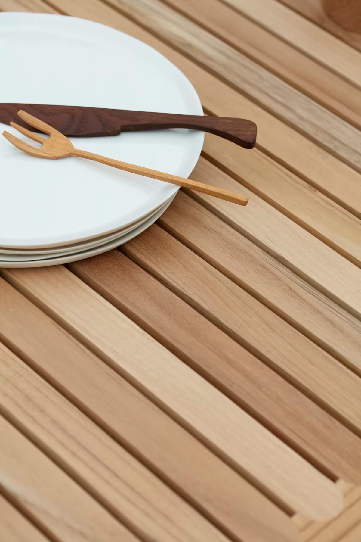 The AH901 Outdoor Dining table was designed by Alfred Homann in 2022 as part of the AH Outdoor series, characterized by strict lines elegantly united with soft, rounded details. Like the rest of the series, the table is made of FSC?-certified teak, a hardy type of wood that patinas beautifully over time. The outdoor collection also includes dining table chairs – with or without armrests – which can be combined with the dining table. The table seats up to eight people and is also available with a half-length table top.
