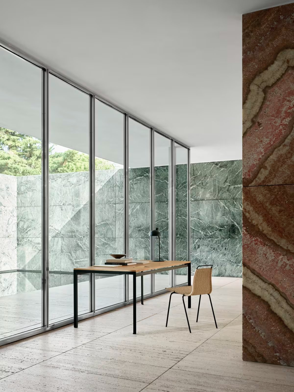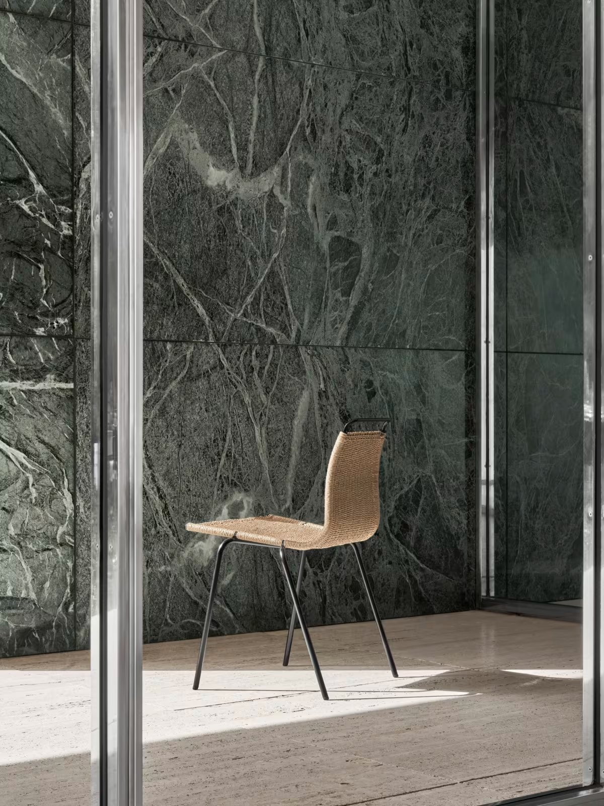 Poul Kj?rholm was one of the star architects behind Danish Modern. With his functionalistic approach to furniture design, Kj?rholm cultivated simplicity and lightness. Moreover, as a designer, he excelled at combining his favorite material, steel, with other organic materials. Both qualities are reflected beautifully in the PK1 dining chair.