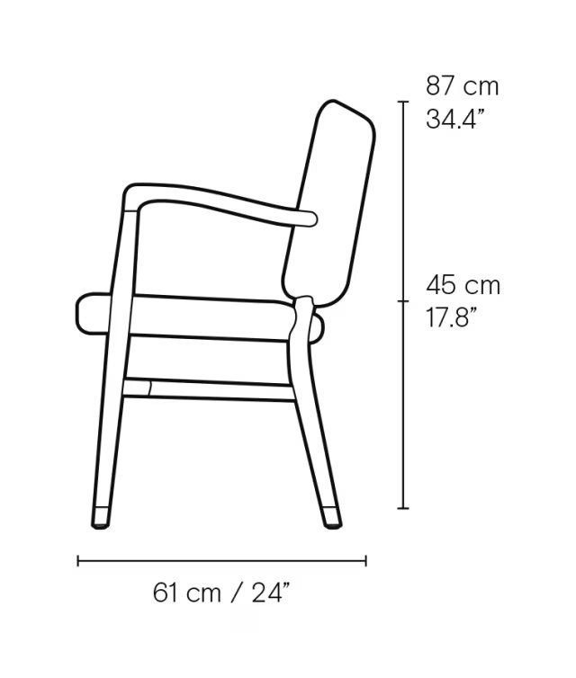 The VLA61 Monarch Chair was designed by Vilhelm Lauritzen in 1944, and only ten chairs were originally produced. The chair has a poetic design, functionalist details and an elegant interplay between soft upholstery and the carefully hand-polished frame. Available in several variants.