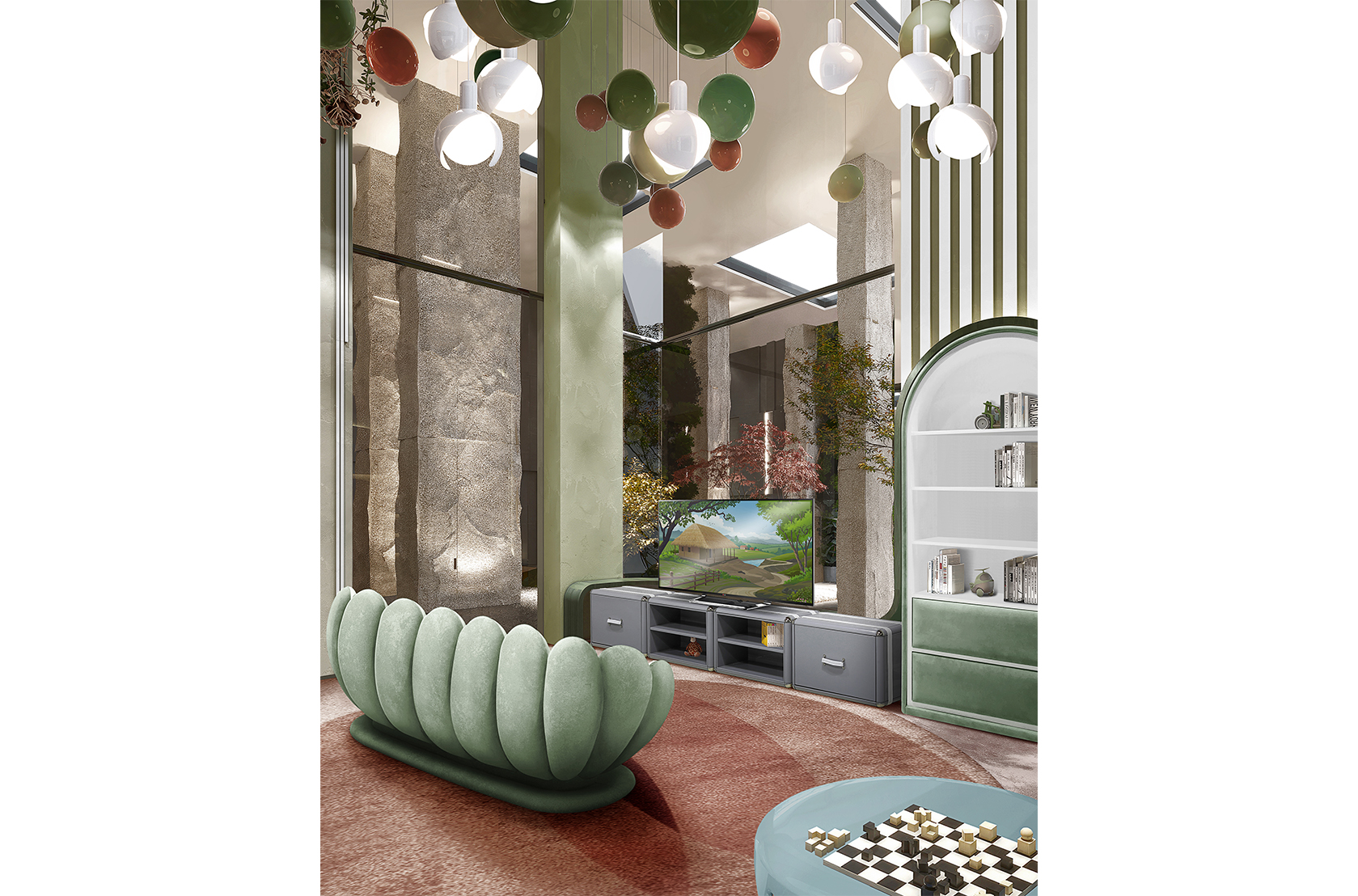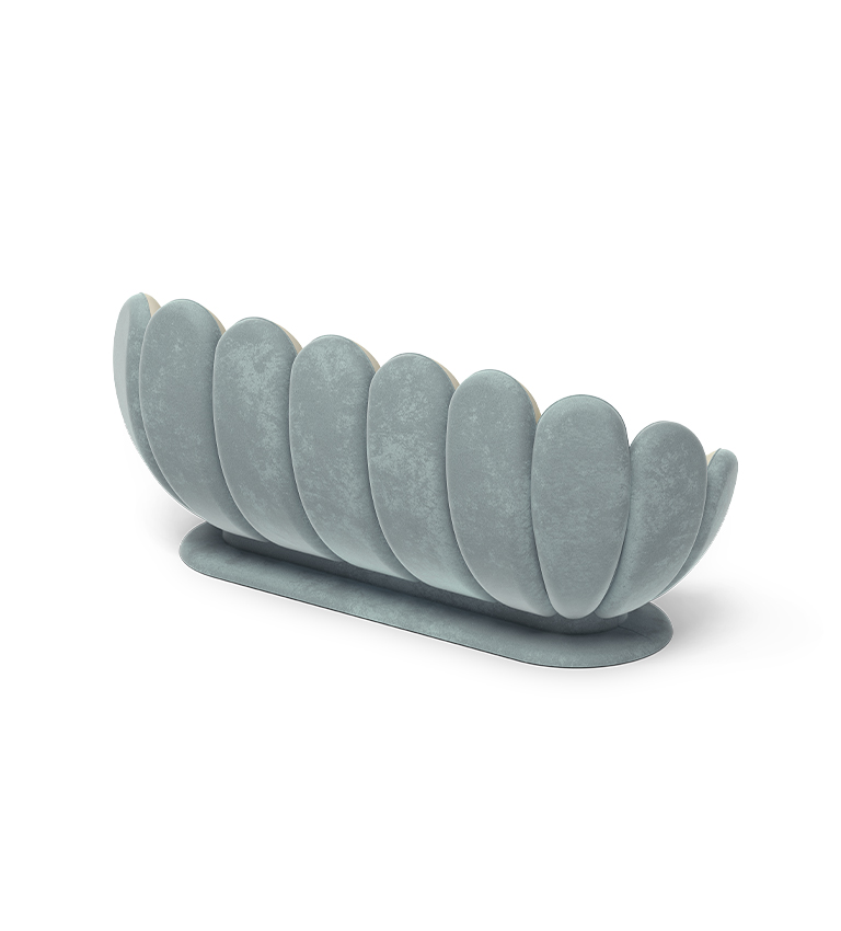 The divine Lotus flower extends its seating reign, through a modern and super comfy sofa version. With a contemporary touch and fully upholstered in velvet, it is the ideal piece to gather friends, whether for playing or studying, as it also serves as a cozy reading corner.