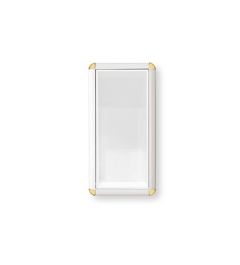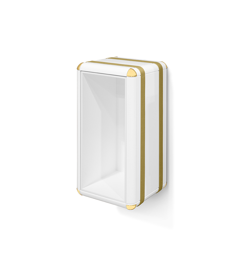 Lacquered In Glossy White, Metal Parts In Gold or Nickel Plated Finishing, Strips In Gold or Grey Synthetic Leather