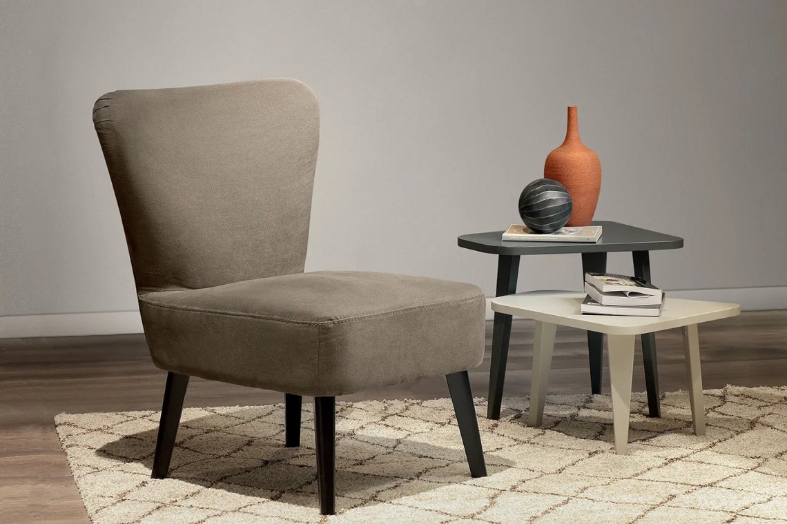 Margot s an armchair for confined spaces inspired by the cocktail ARMCHAIRs of the 1950s without armrests, ideal in the reading corner of a Modern living room, in the office and in the bedroom.