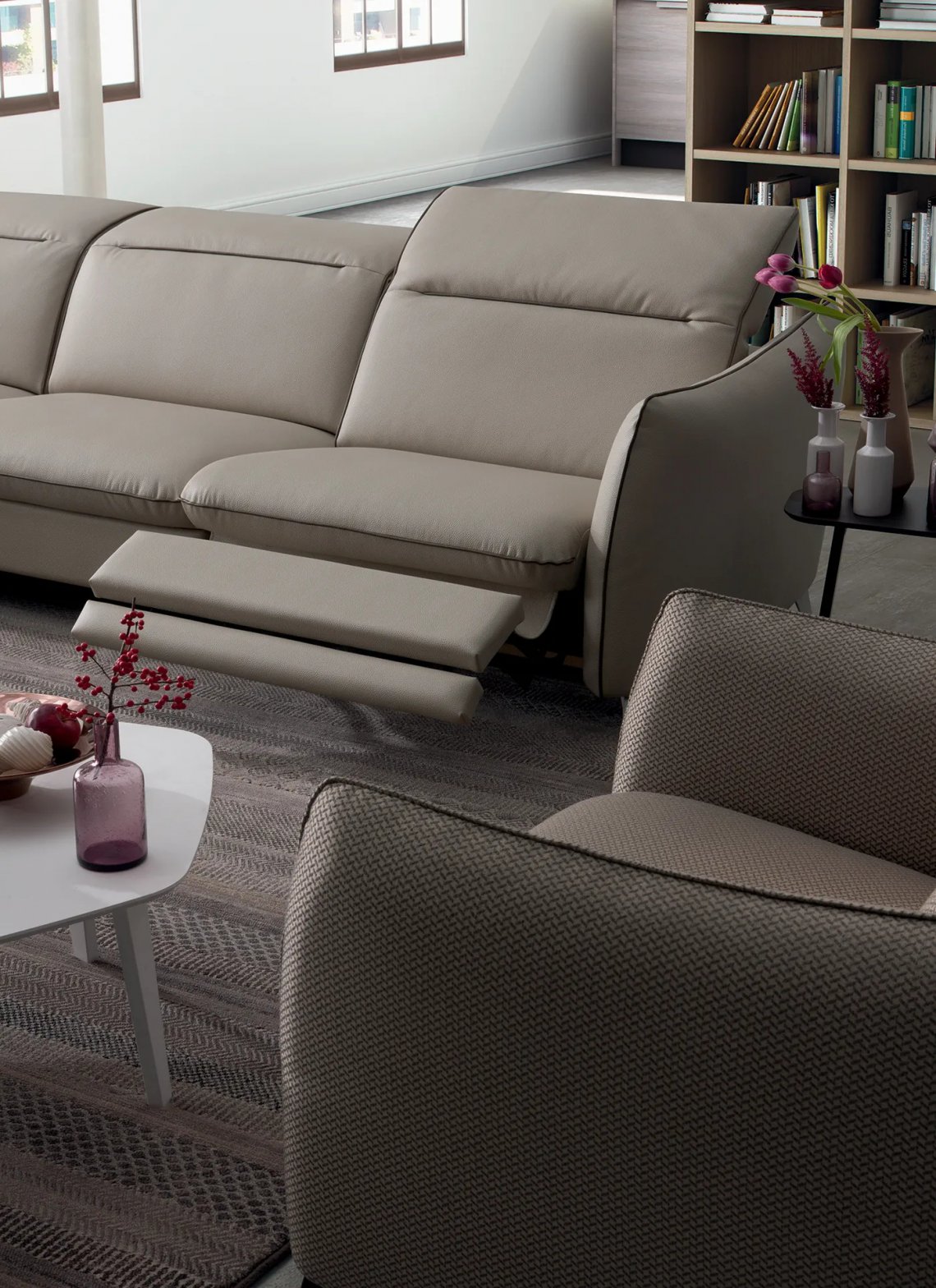 A refined and exciting style, perfectly adaptable to any room and style: VERVE helps you to furnish your spaces without weighing them down, thanks to its slim shapes and flexible armrest that allows you to redefine its profiles making it linear and composed or with flared edges rich in detail.