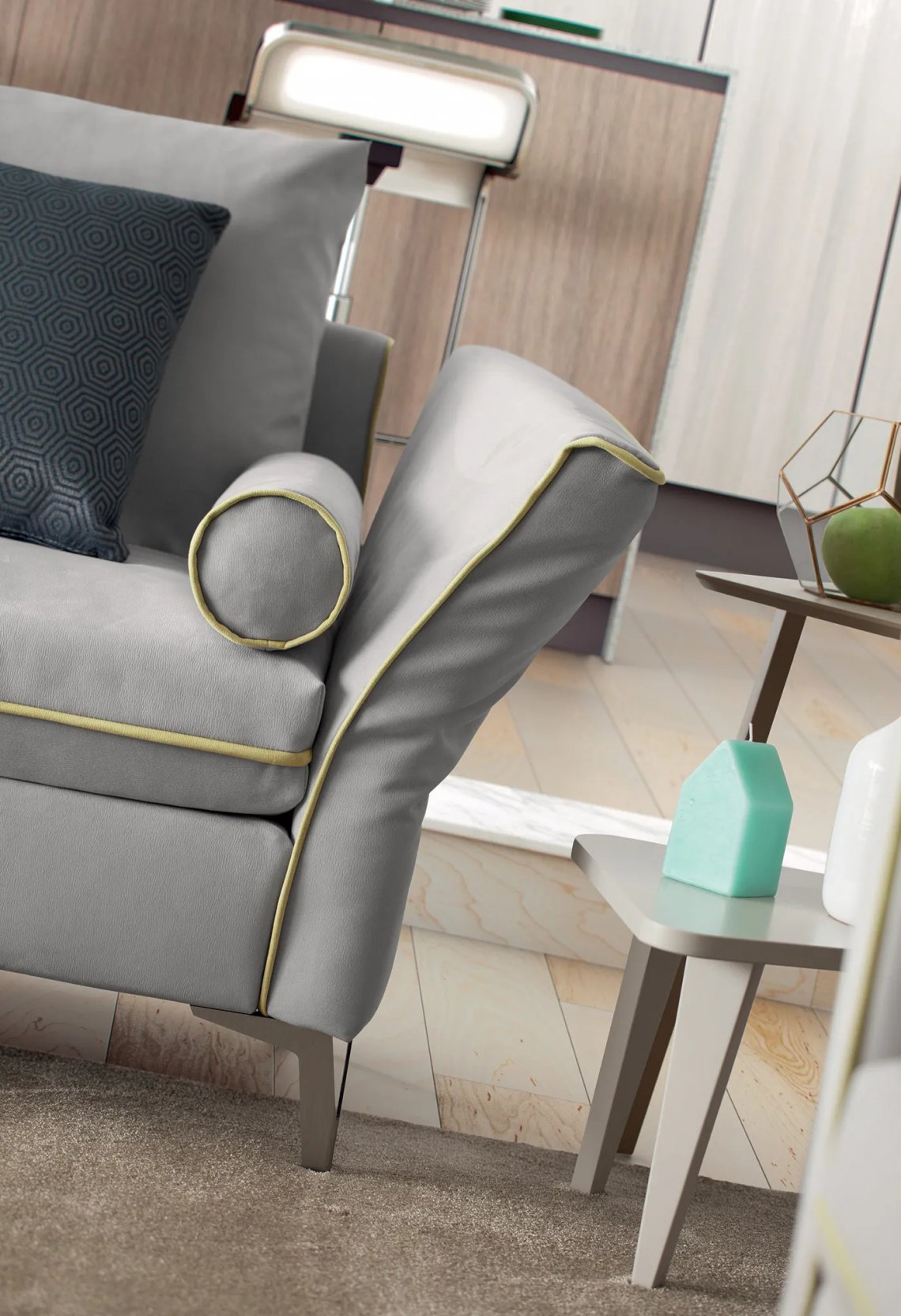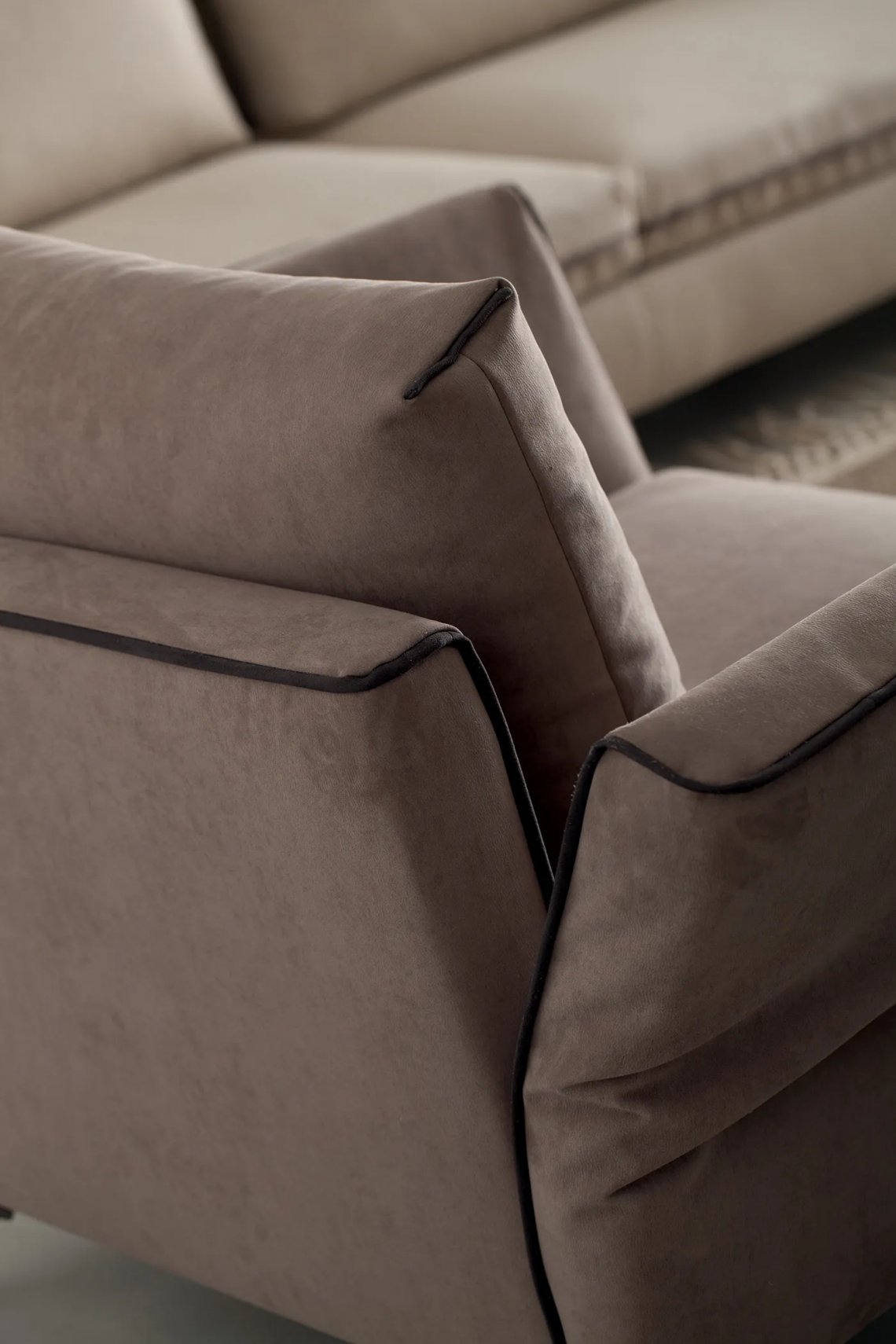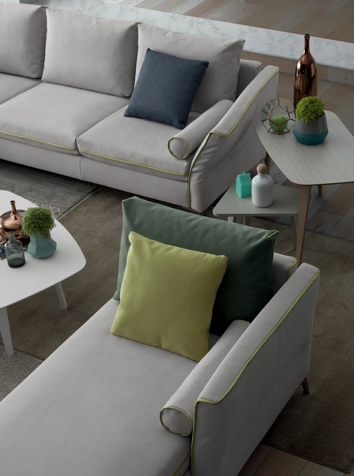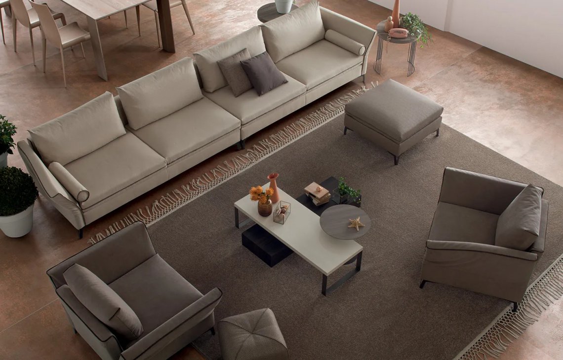 A modular system dedicated to hospitality and relaxation that adapts to all spaces. The armrests are flexible making all possible configurations comfortable.