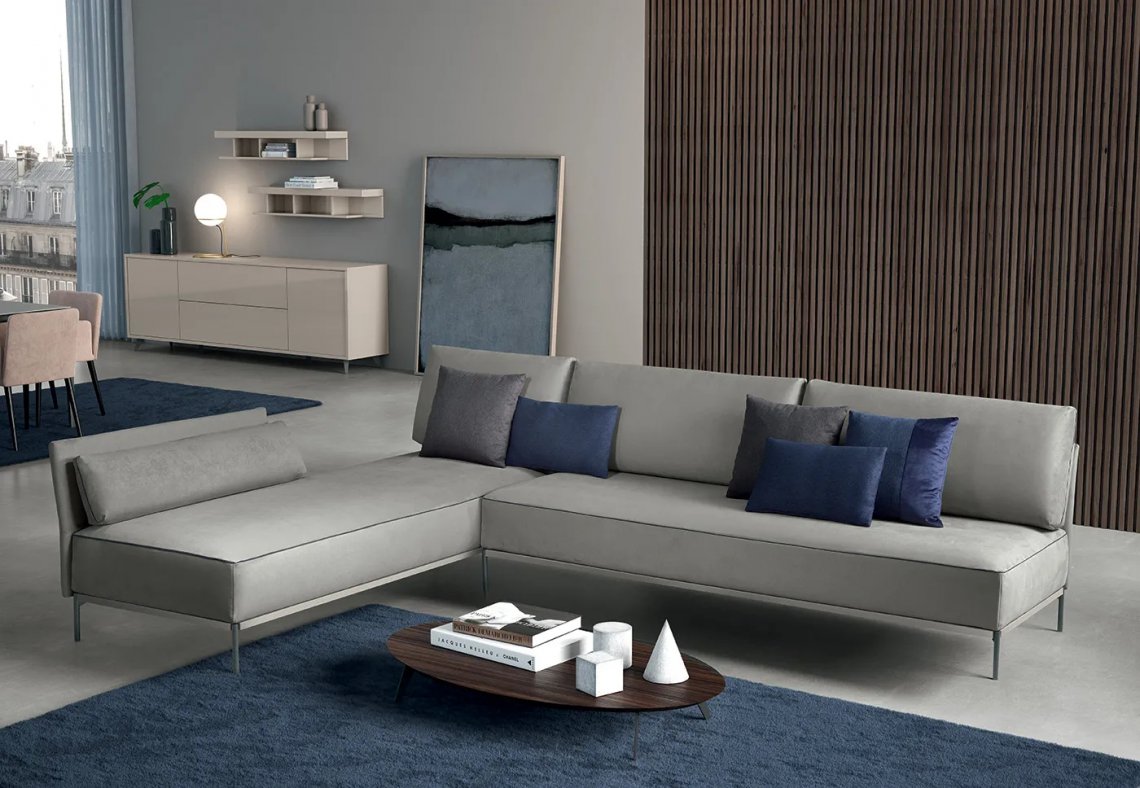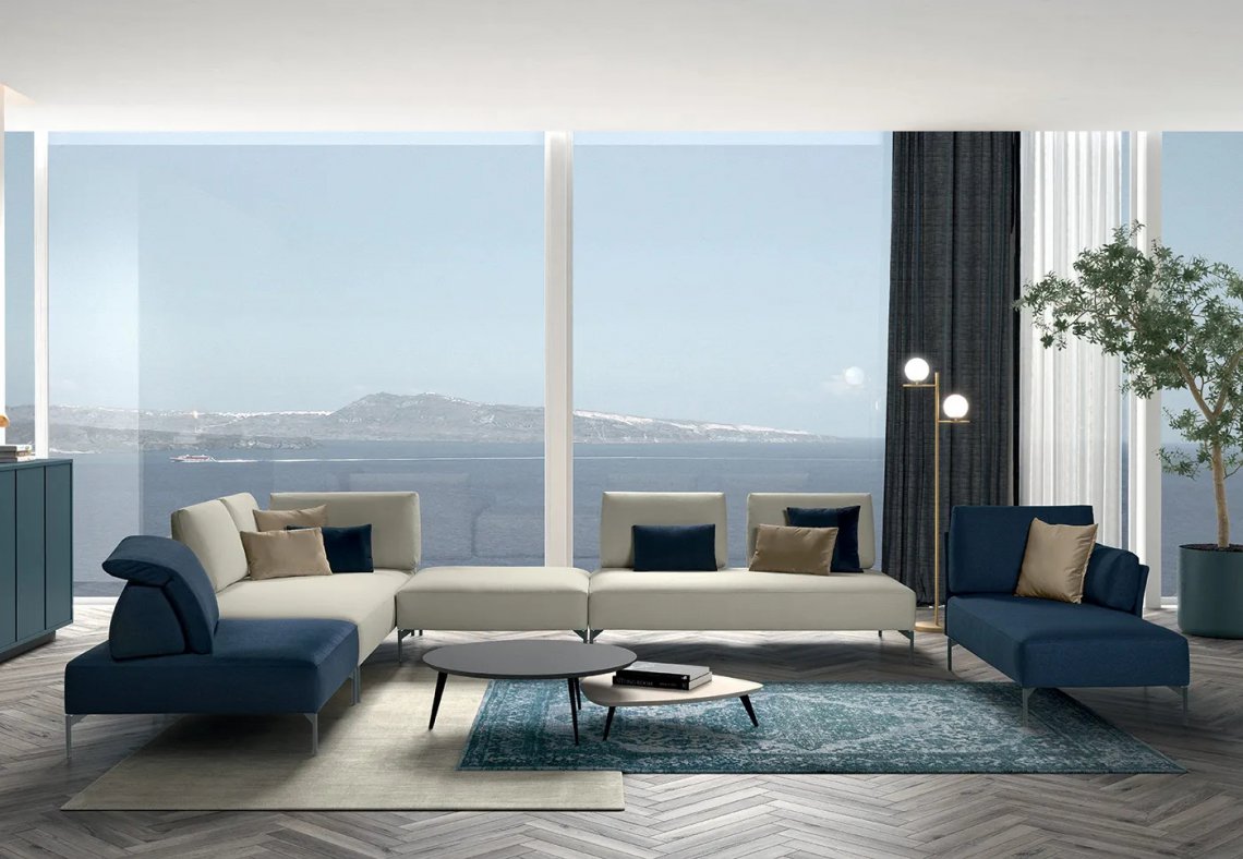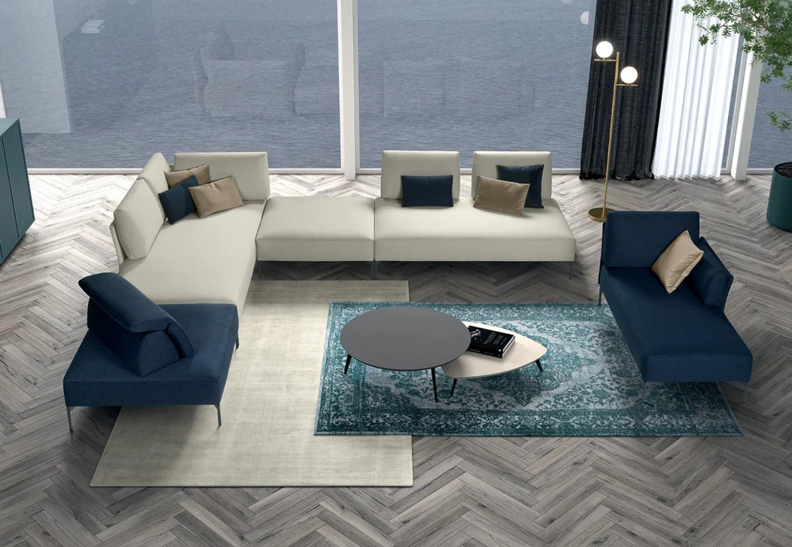 A modular system dedicated to comfort and style that adapts to all spaces. The essential and welcoming lines are emphasised by the adoption of feet that lift the structure off the ground, giving impetus to all possible configurations that can be created.