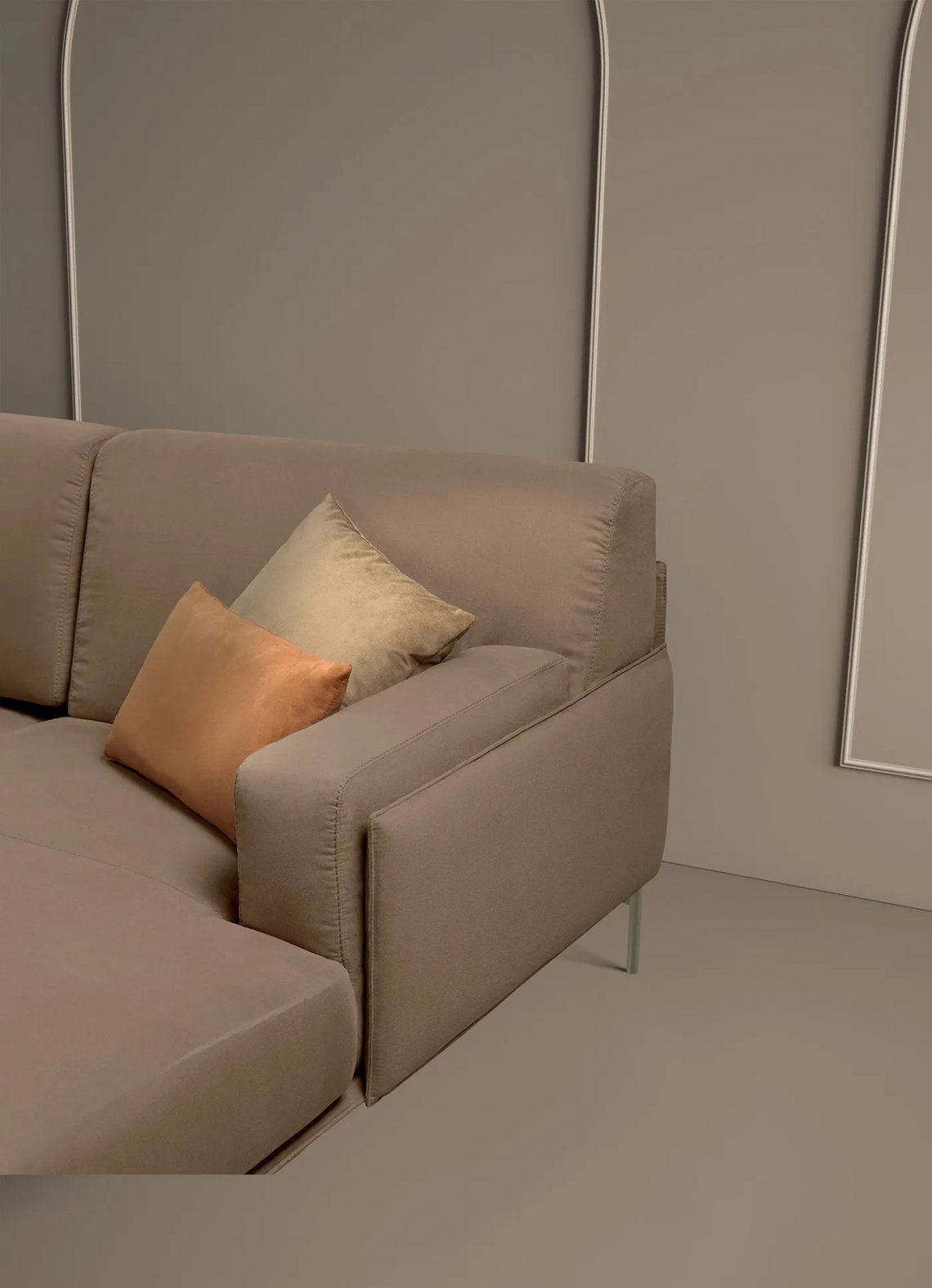 In its stylistic canons we find a timeless elegance characterised by the versatility of the shapes: the different combinations of armrest and backrest possible, making every style choice unique.