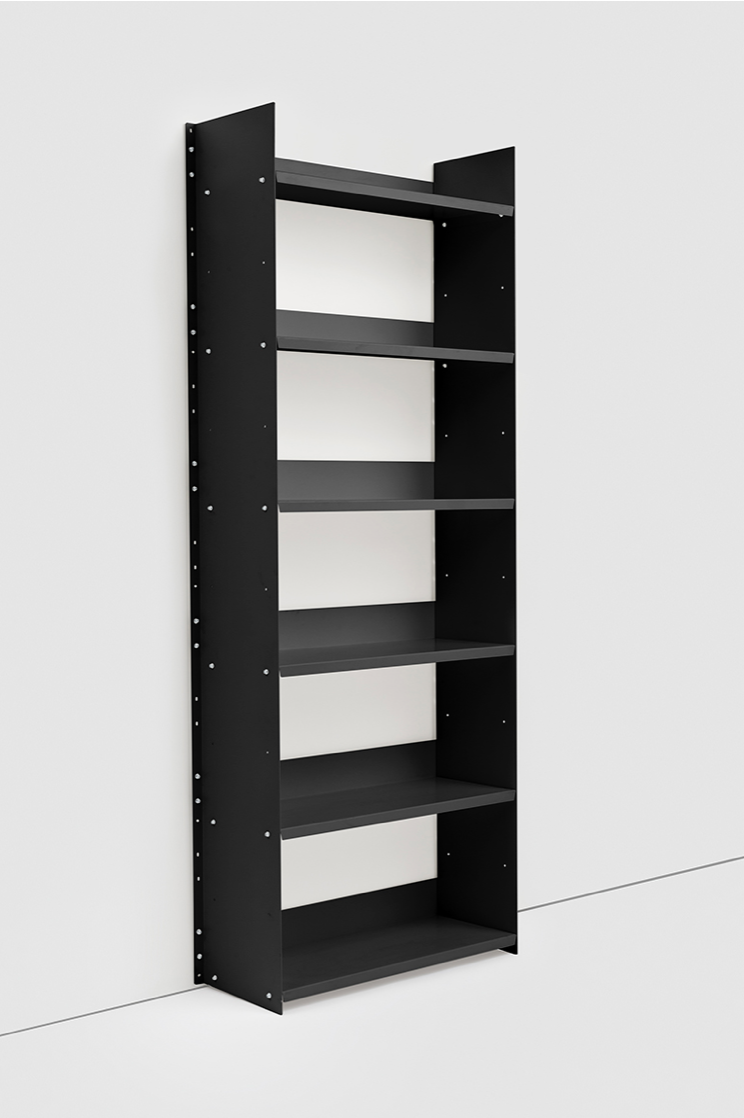Gran Livorno is a small, freestanding bookcase. It is the evolution of the Livorno bookcase, and maintains the same structural principals and minimal form. The piece is made of varnished sheet metal and the brilliance of its design really shines through when it is put into use.
