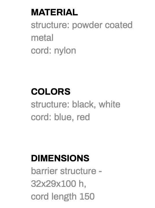 A dynamic system that begins with a smart section and grows with the needs of the user. Coat stands, tables, umbrella stands and barriers which can be used together to create different heights and in an endless variety of combinations.