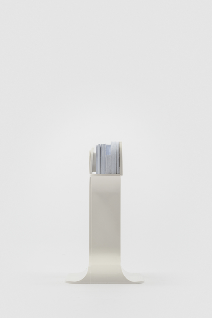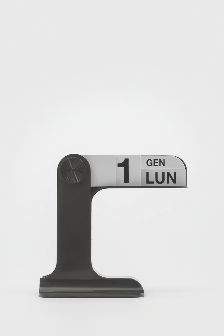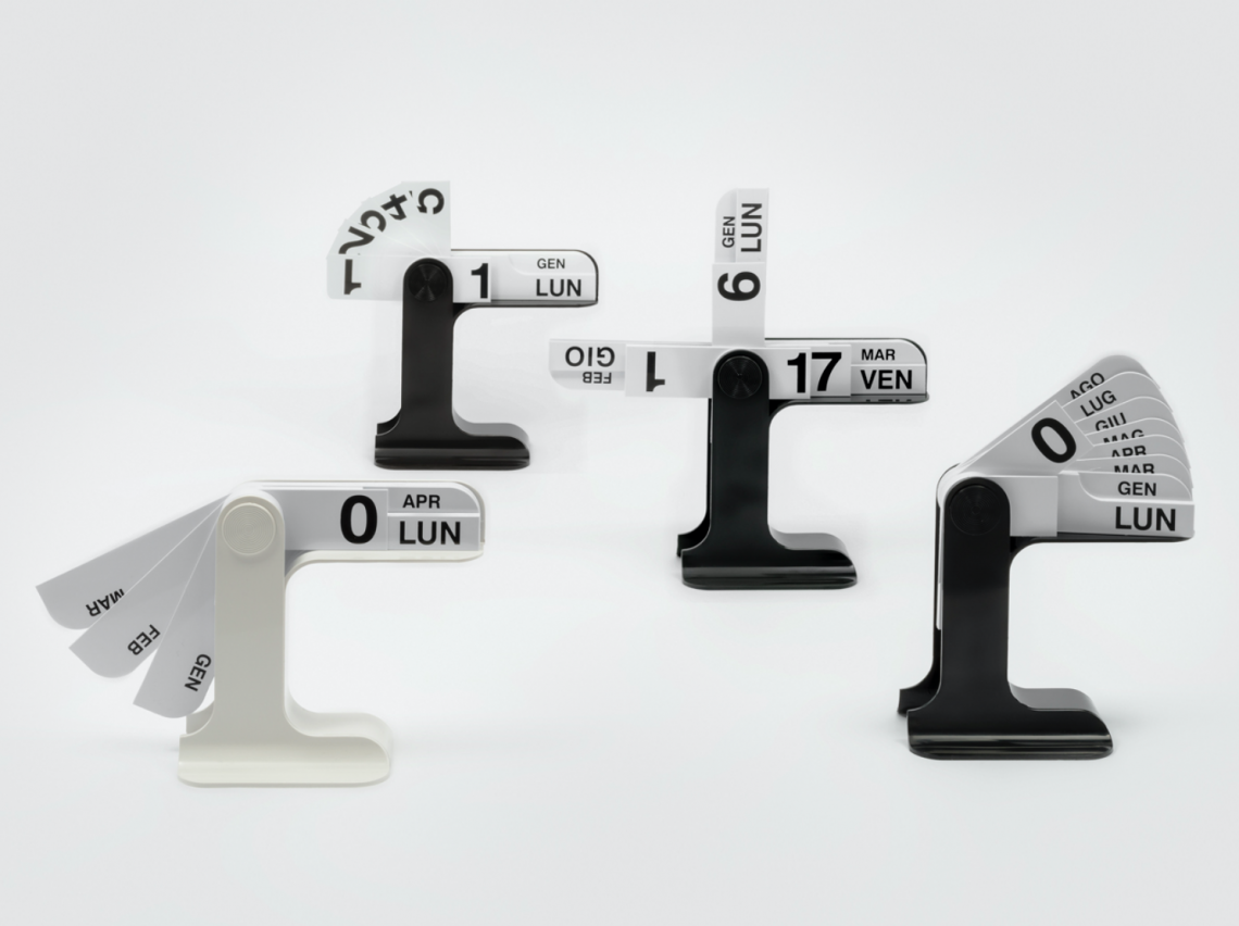 Timor is a perpetual calendar. The PVC cards that represent the days of the week, months of the year and dates are fixed to a central pivot and can be fanned out for the user to choose the appropriate combination. The piece is modular, flexible, washable and transformable, all characteristics that areguaranteed by the use of plastic.